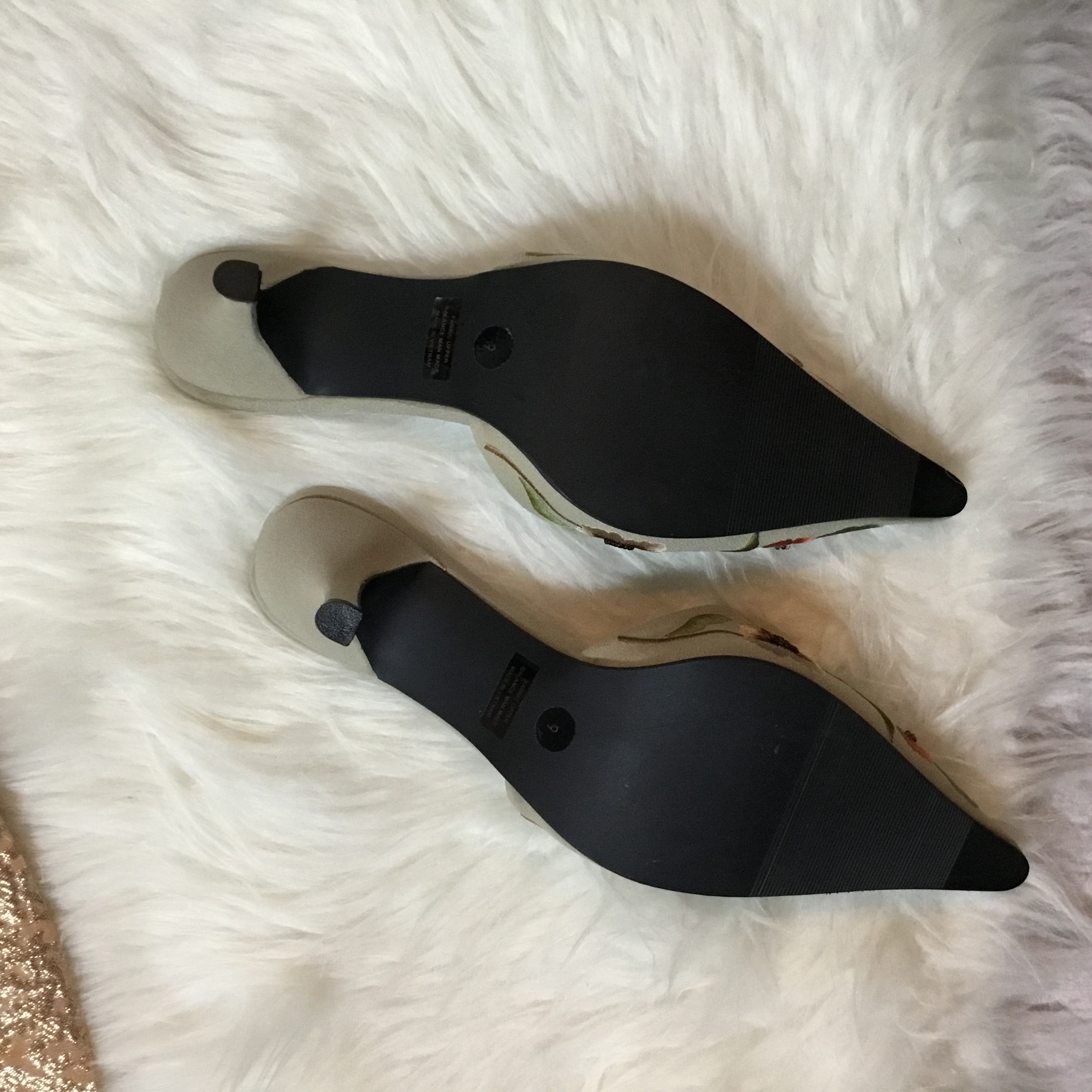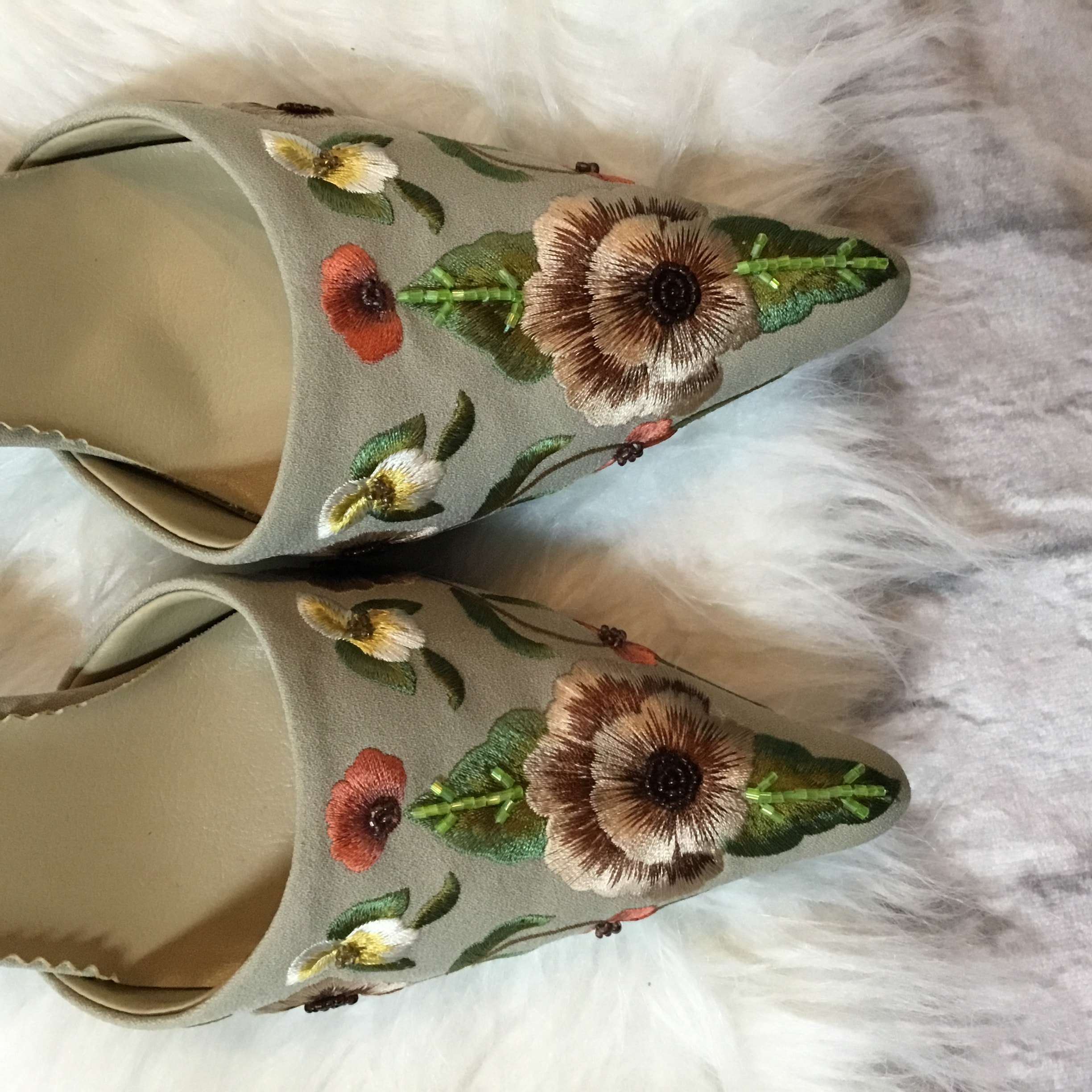 So on trend, kitten heels! The floral detail 🌸 is exquisite!