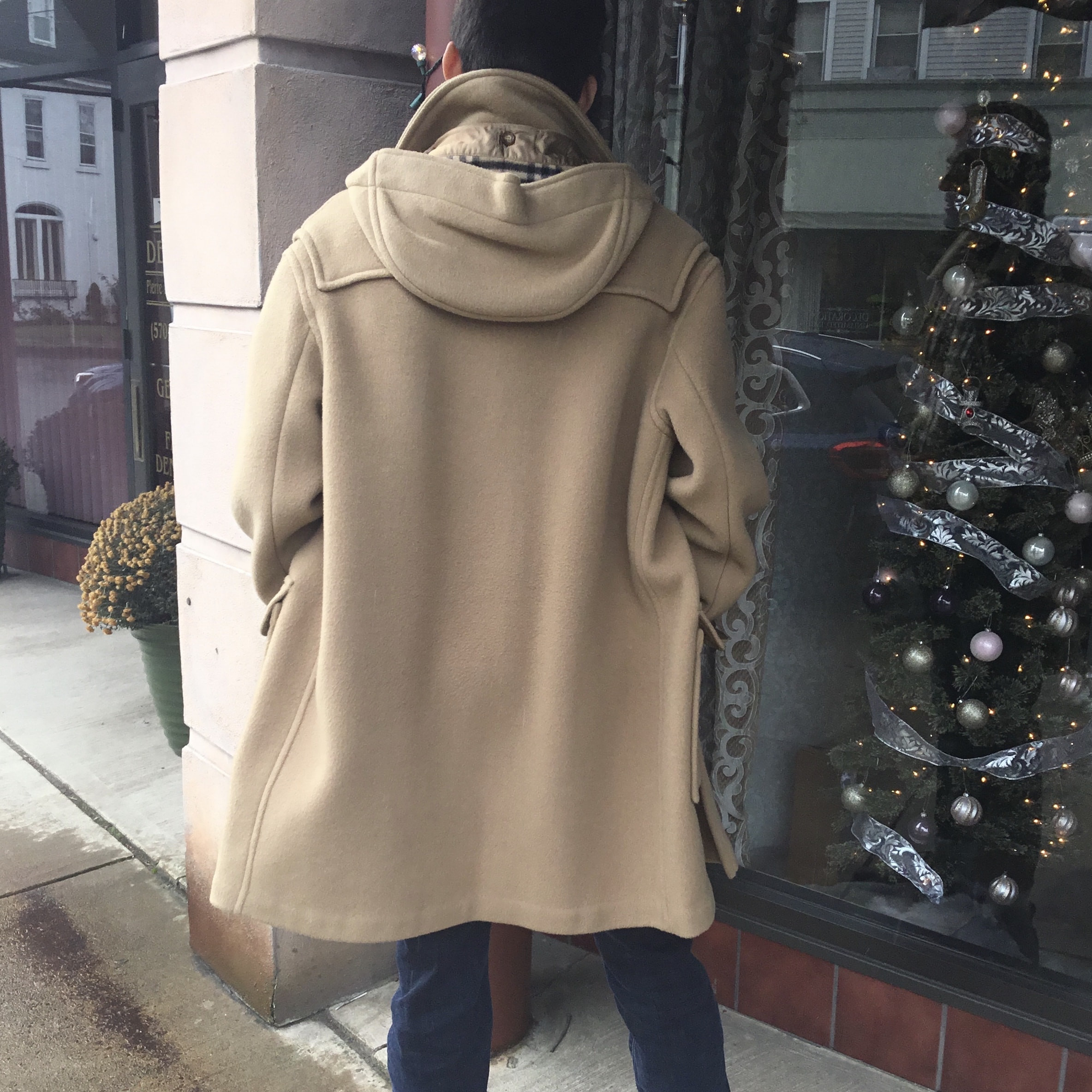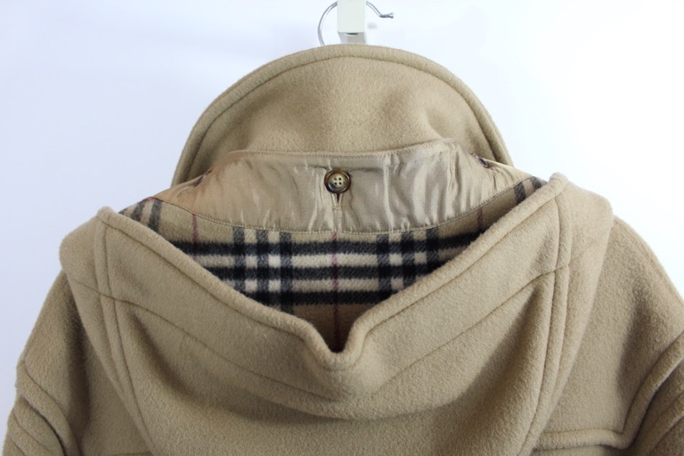 Burberry Men’s wool duffle toggle coat w/hood and nova check interior