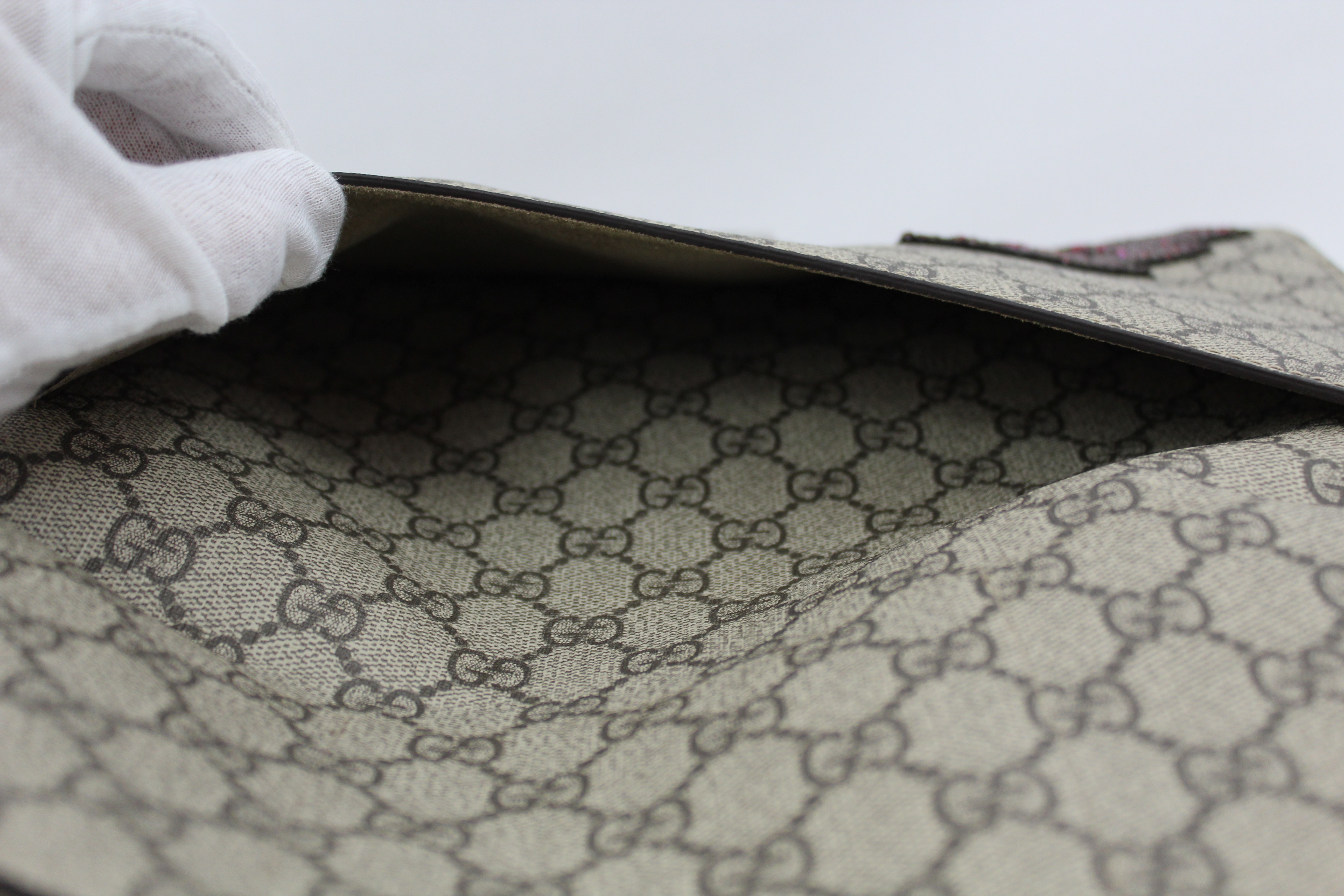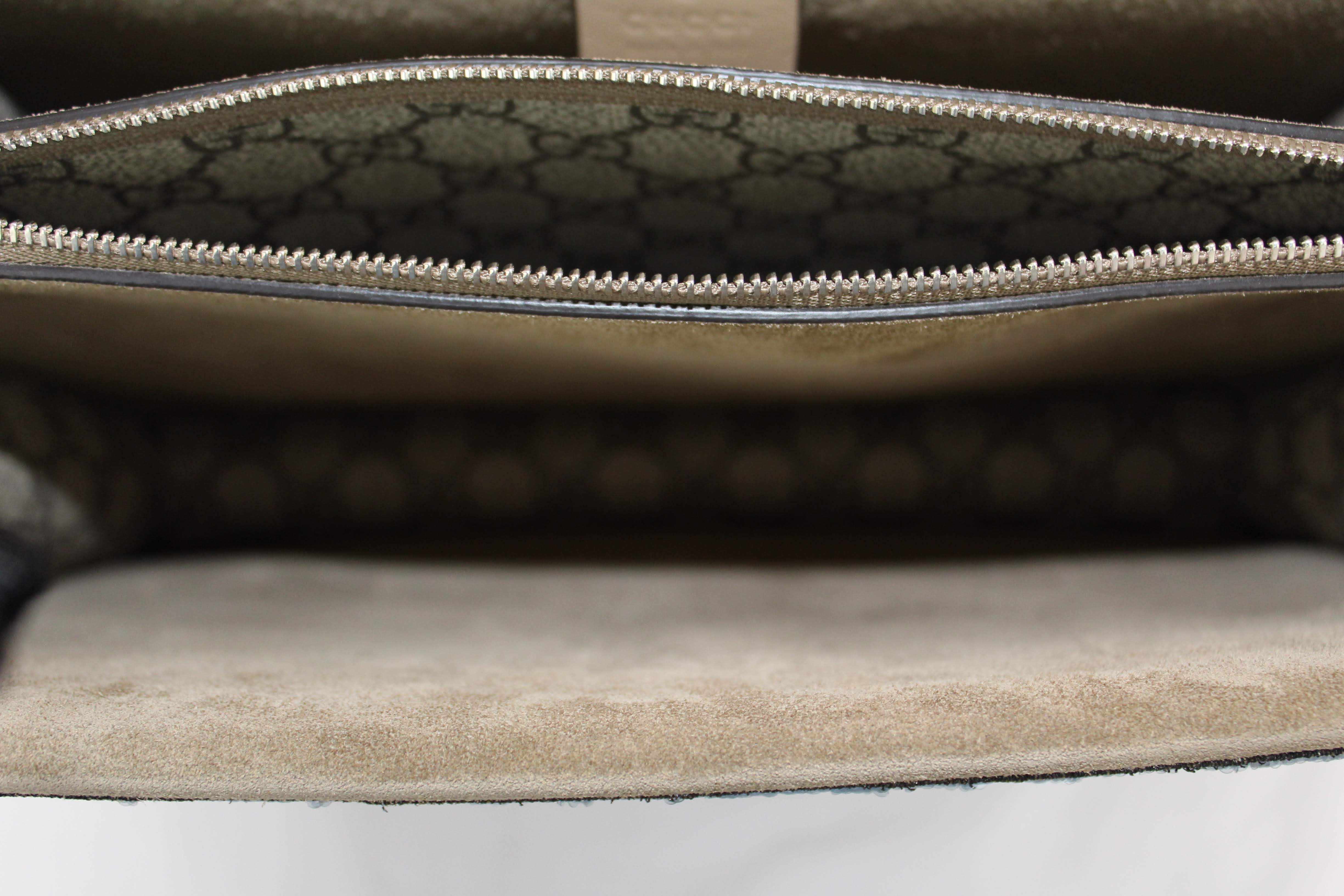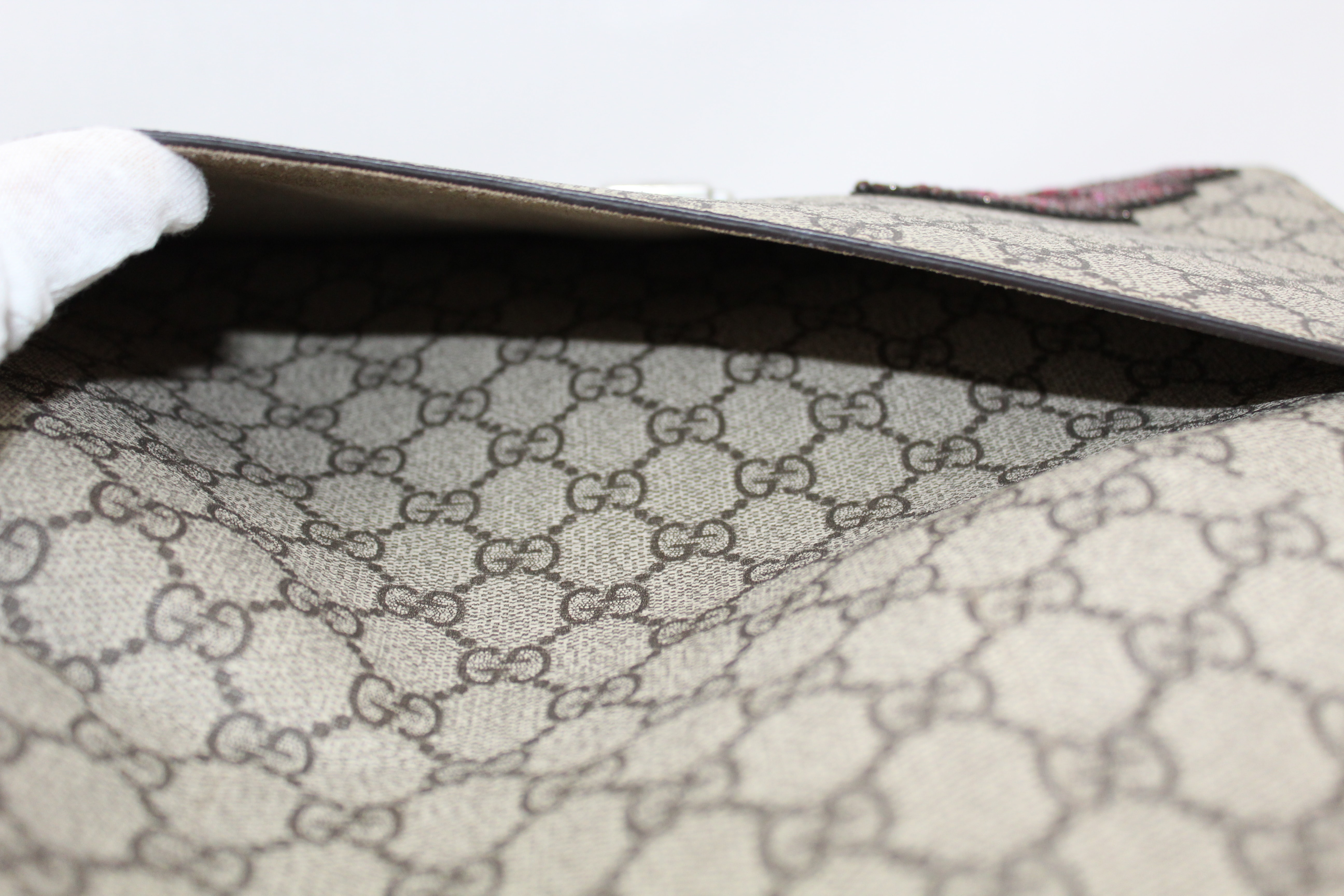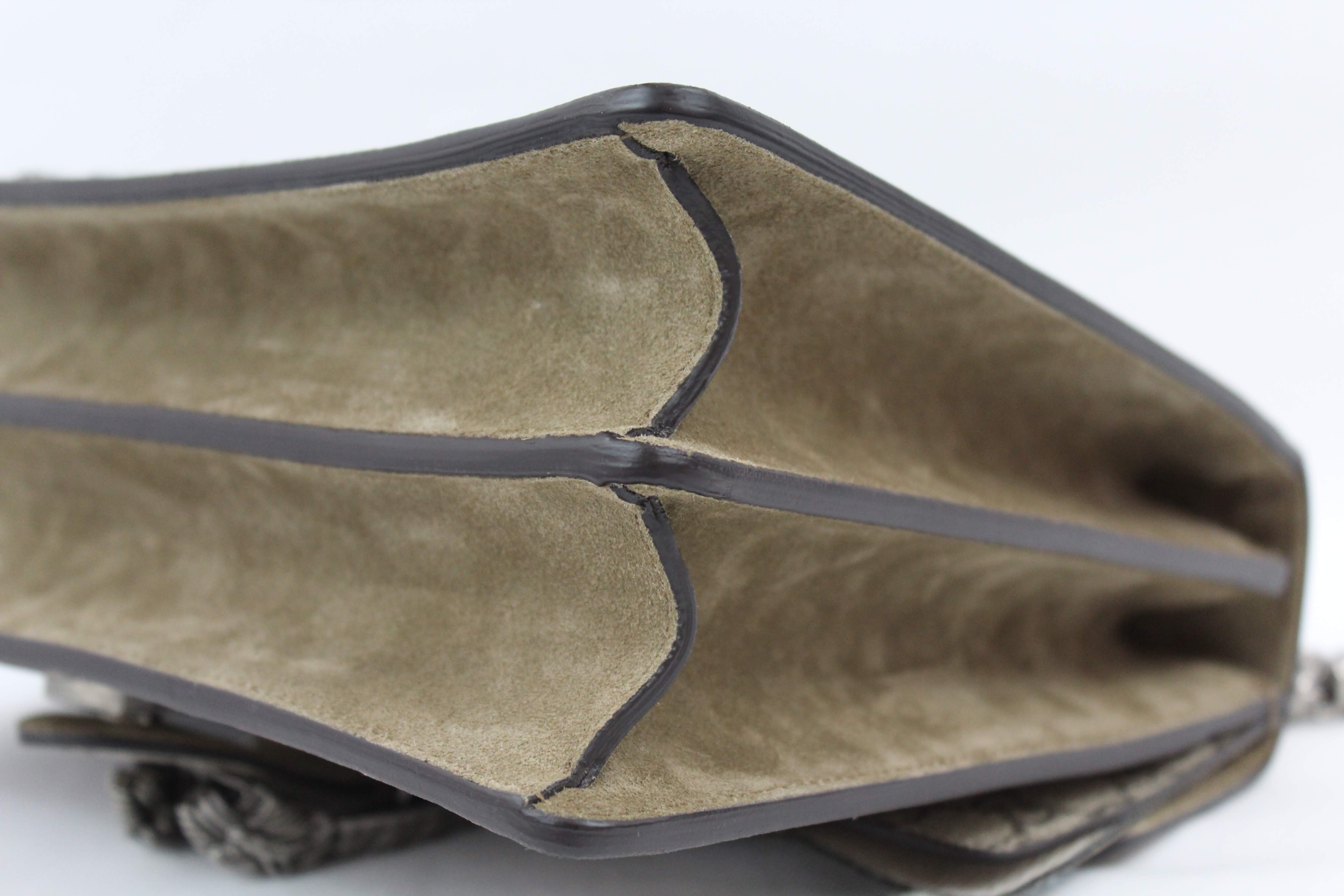 - The Dionysus shoulder bag is already a classic and sure to make a statement. It’s a structured style featuring GG Supreme canvas with hand embroidered sequin appliques. It has a sliding chain offering carrying versatility so you can wear on your shoulder or as a handle bag. This particular style is RETIRED, highly sought after and RARE!