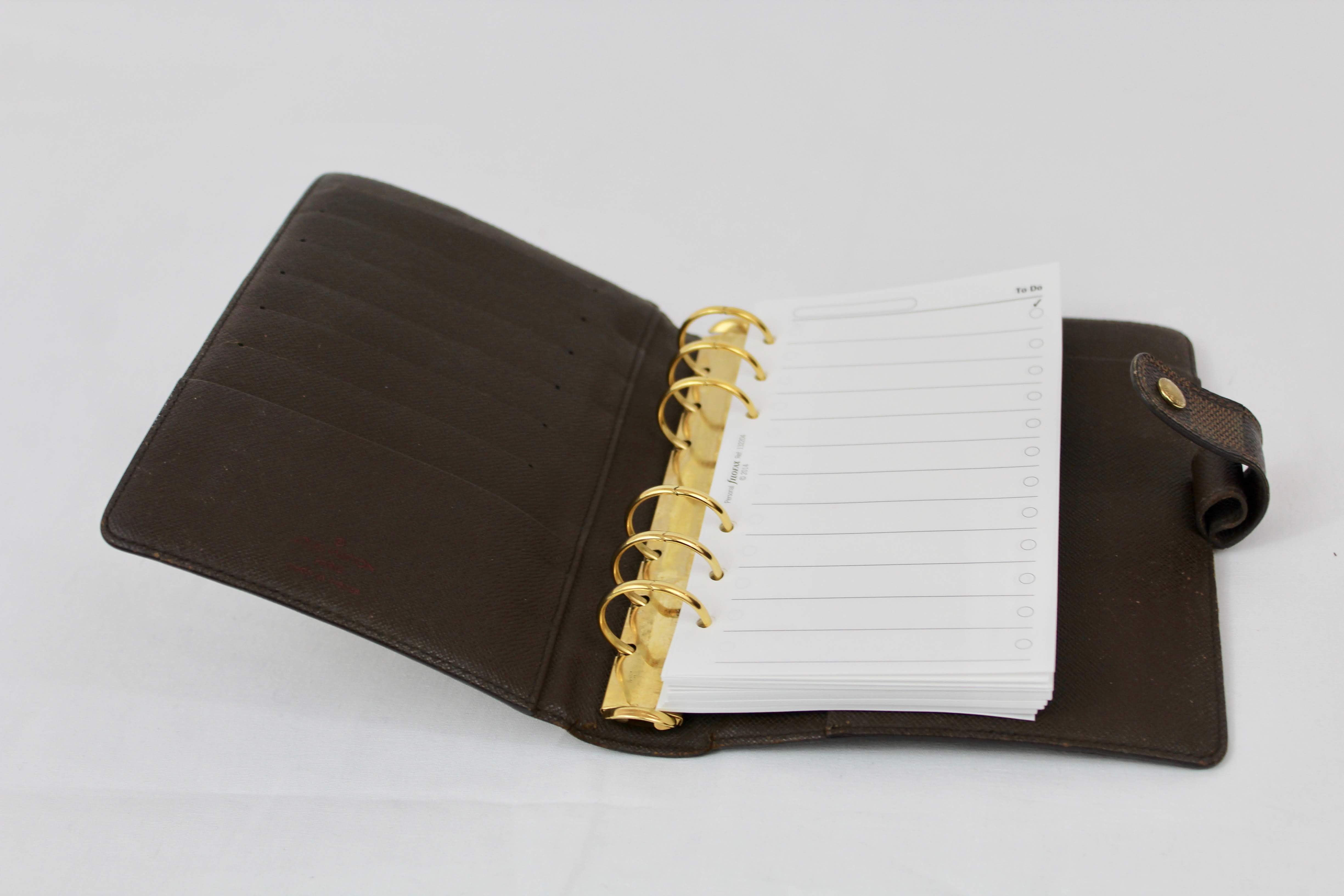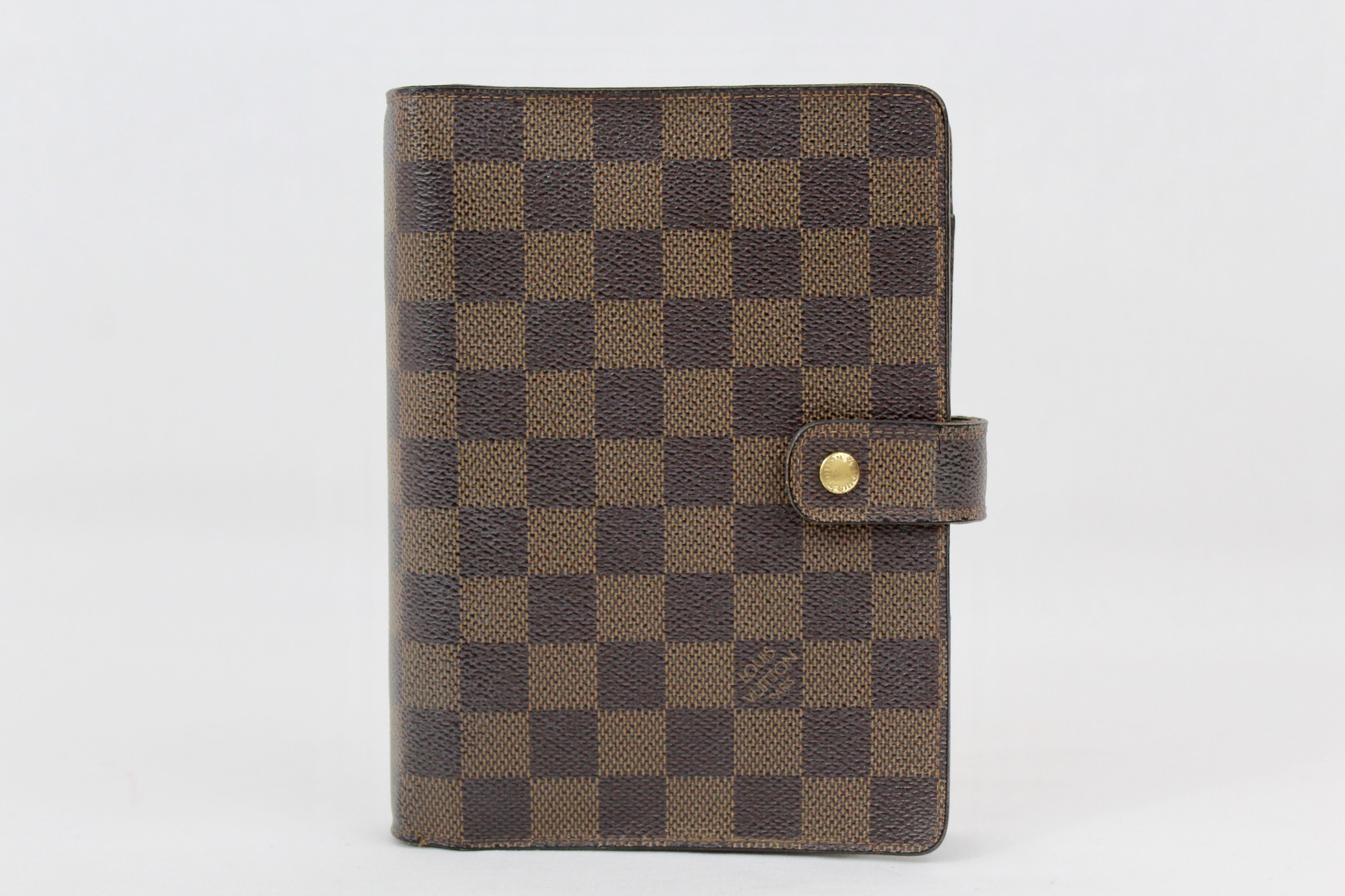 - Louis Vuitton Small Agenda (MM) in Damier Ebene print. This handy 6 ring agenda has a snap closure with 7 slots that can be used for credit cards or ID cards. It also has one pen holder slot at opening. This agenda will come with a 2019 calendar by FILOFAX as a free gift with purchase. Please note the replacement calendar insert is by Filofax and not by Louis Vuitton.