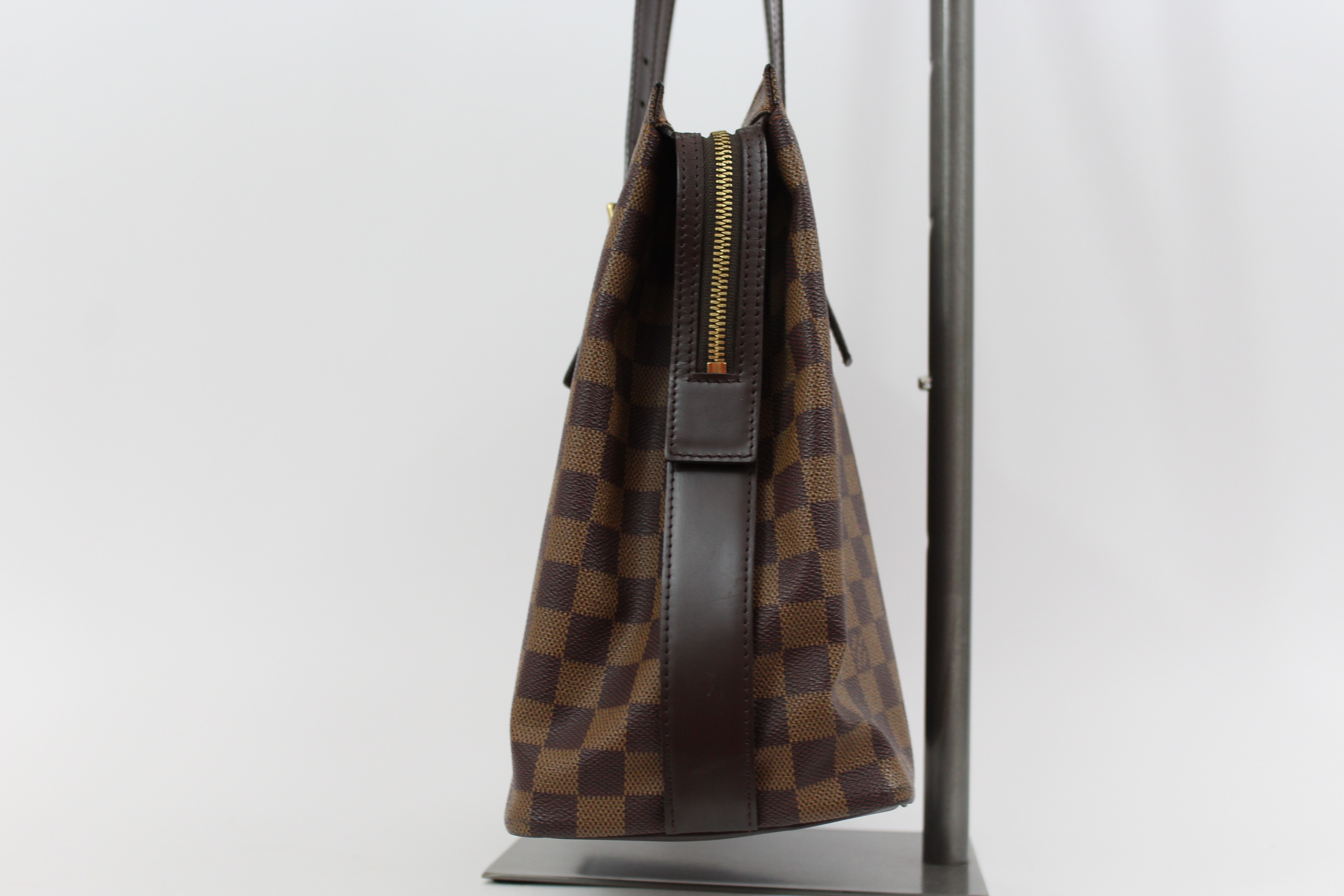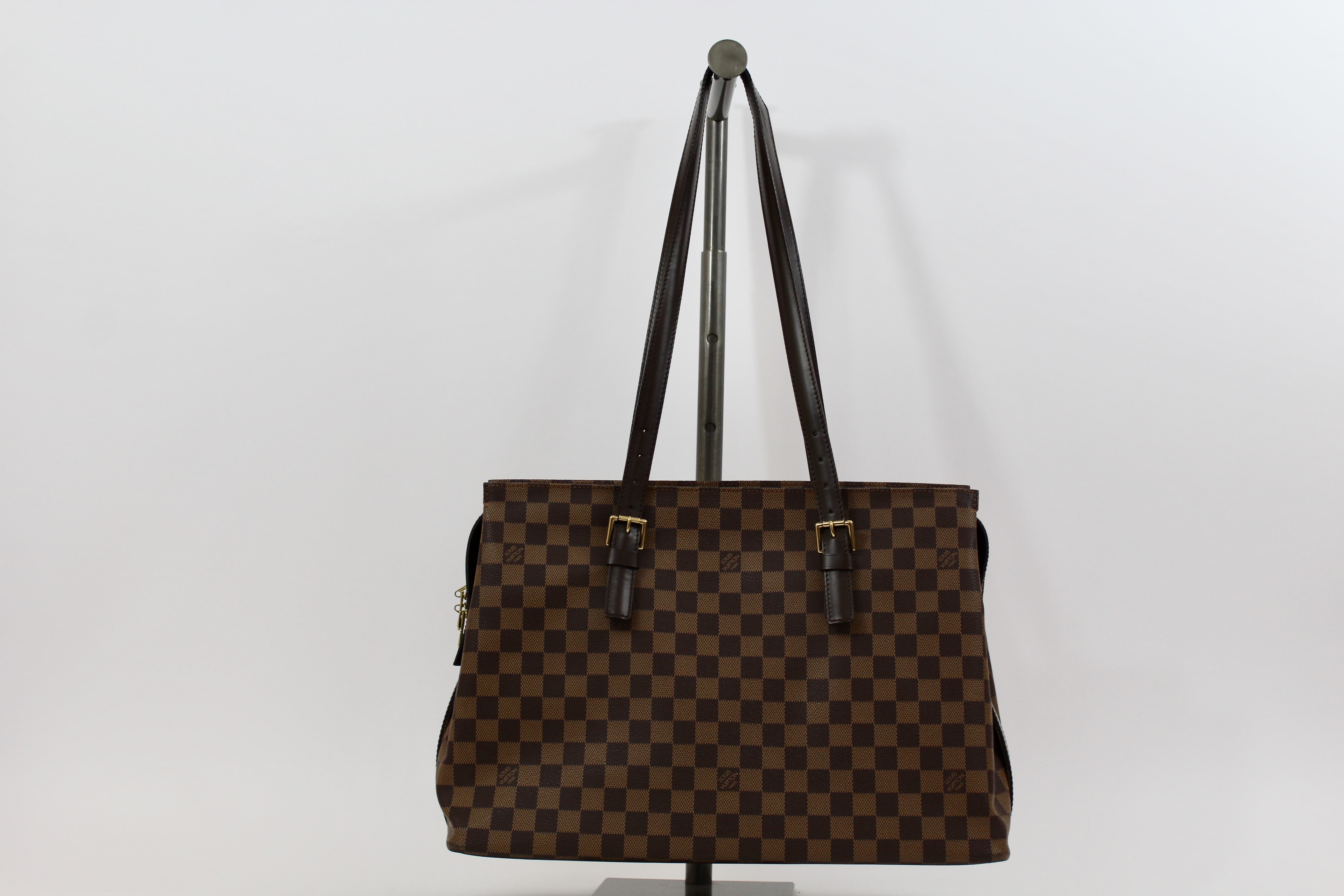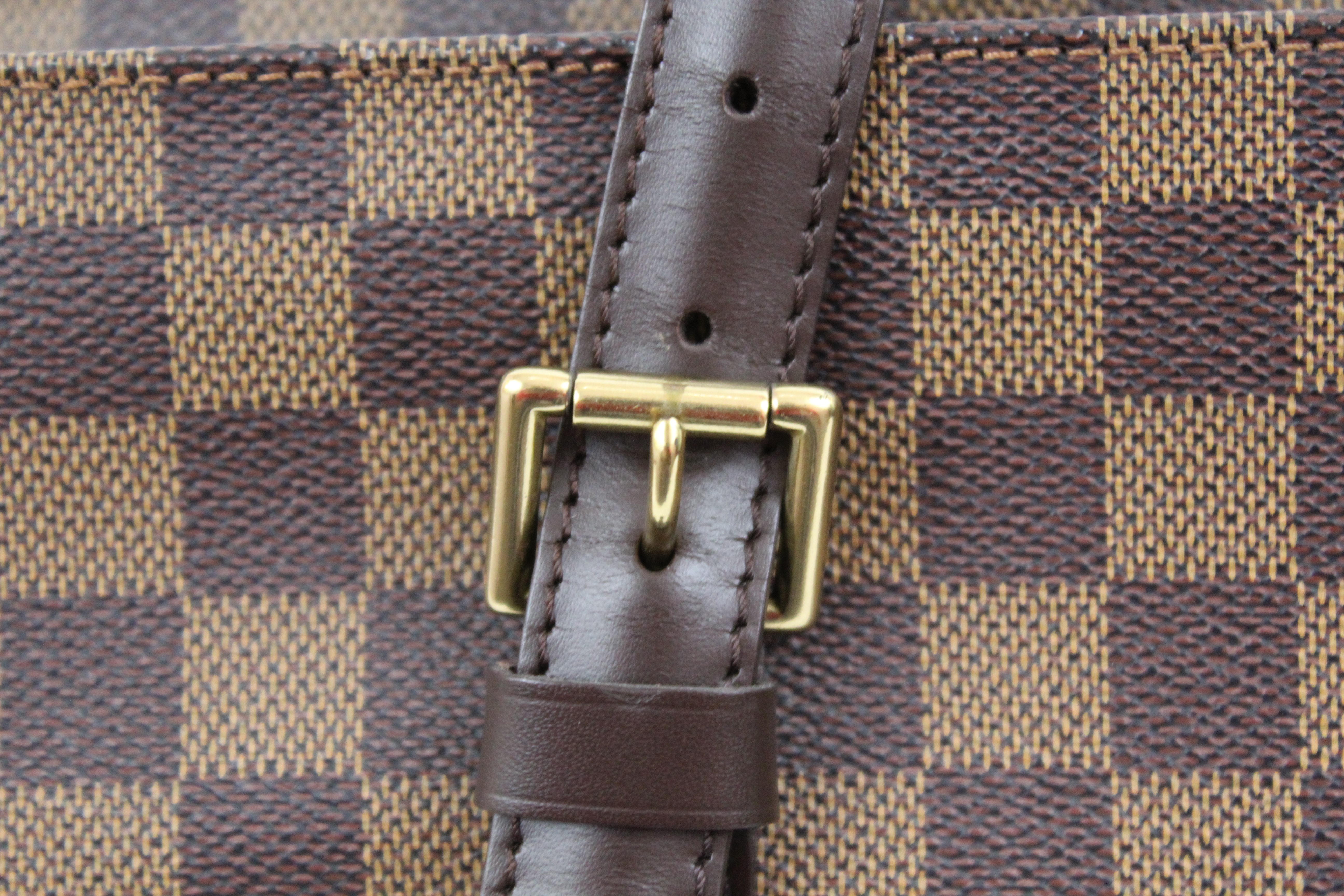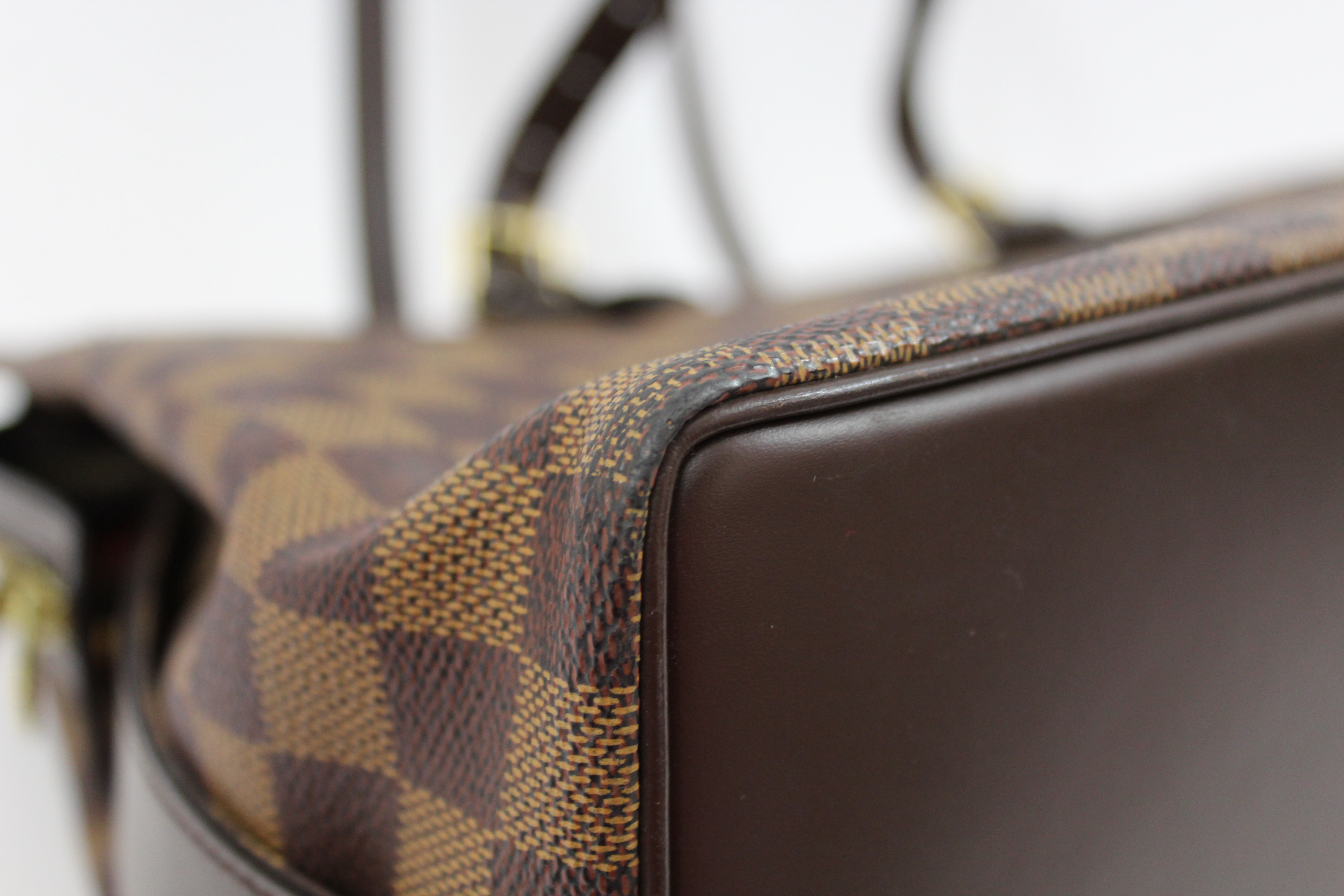 Awesome Louis Vuitton in Damier Ebene tote! Interior has a beautiful orange material interior with a zipper pocket. The straps are adjustable for a custom fit.