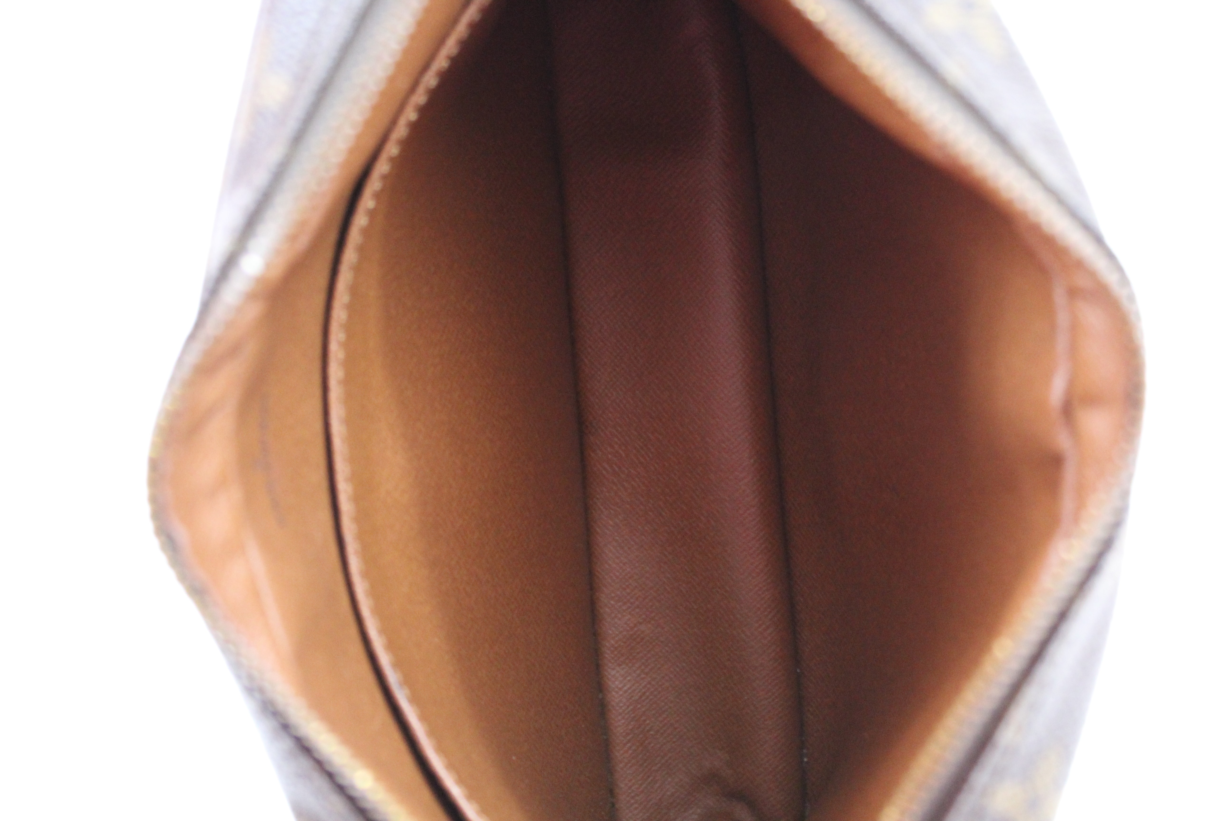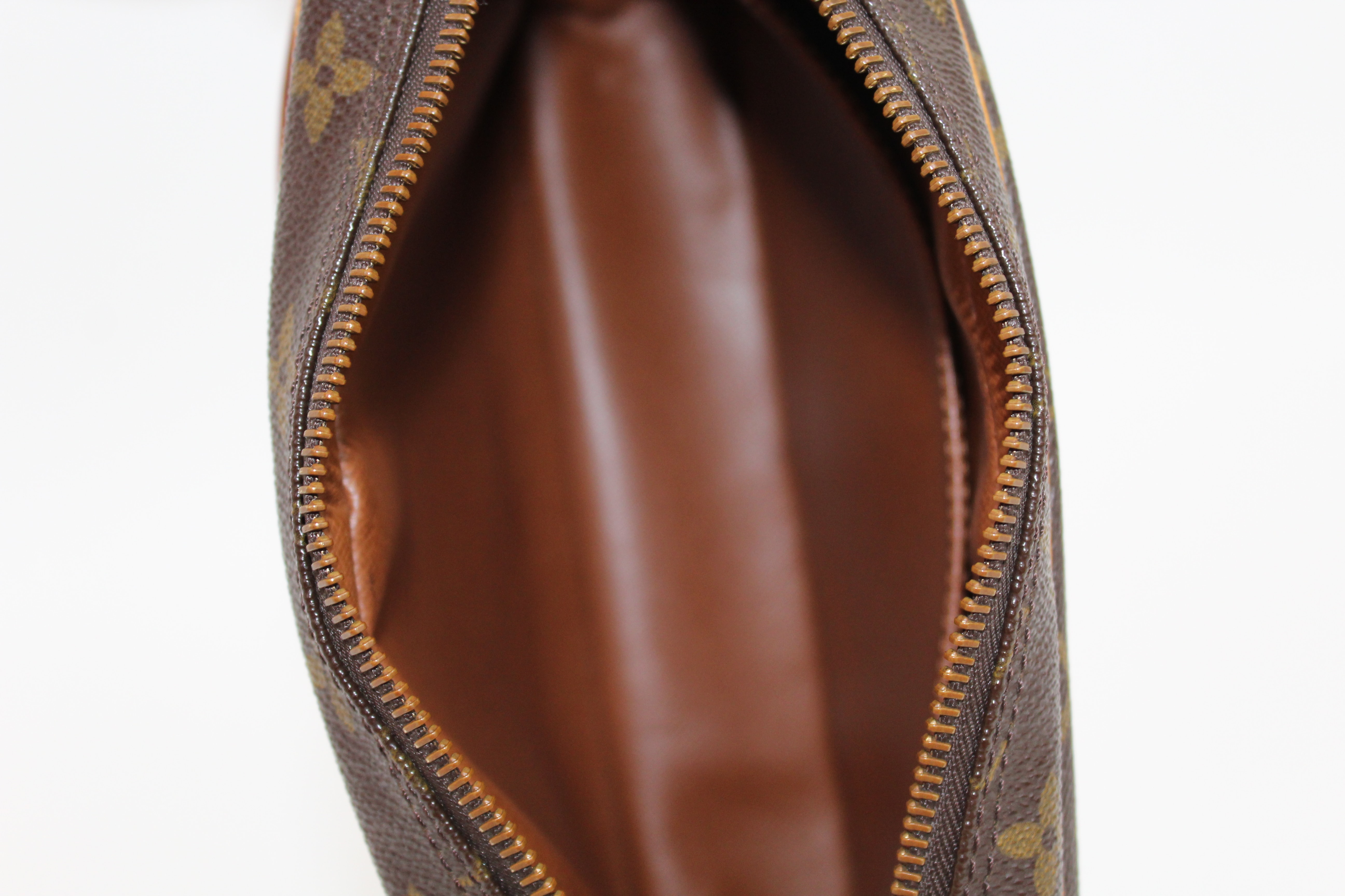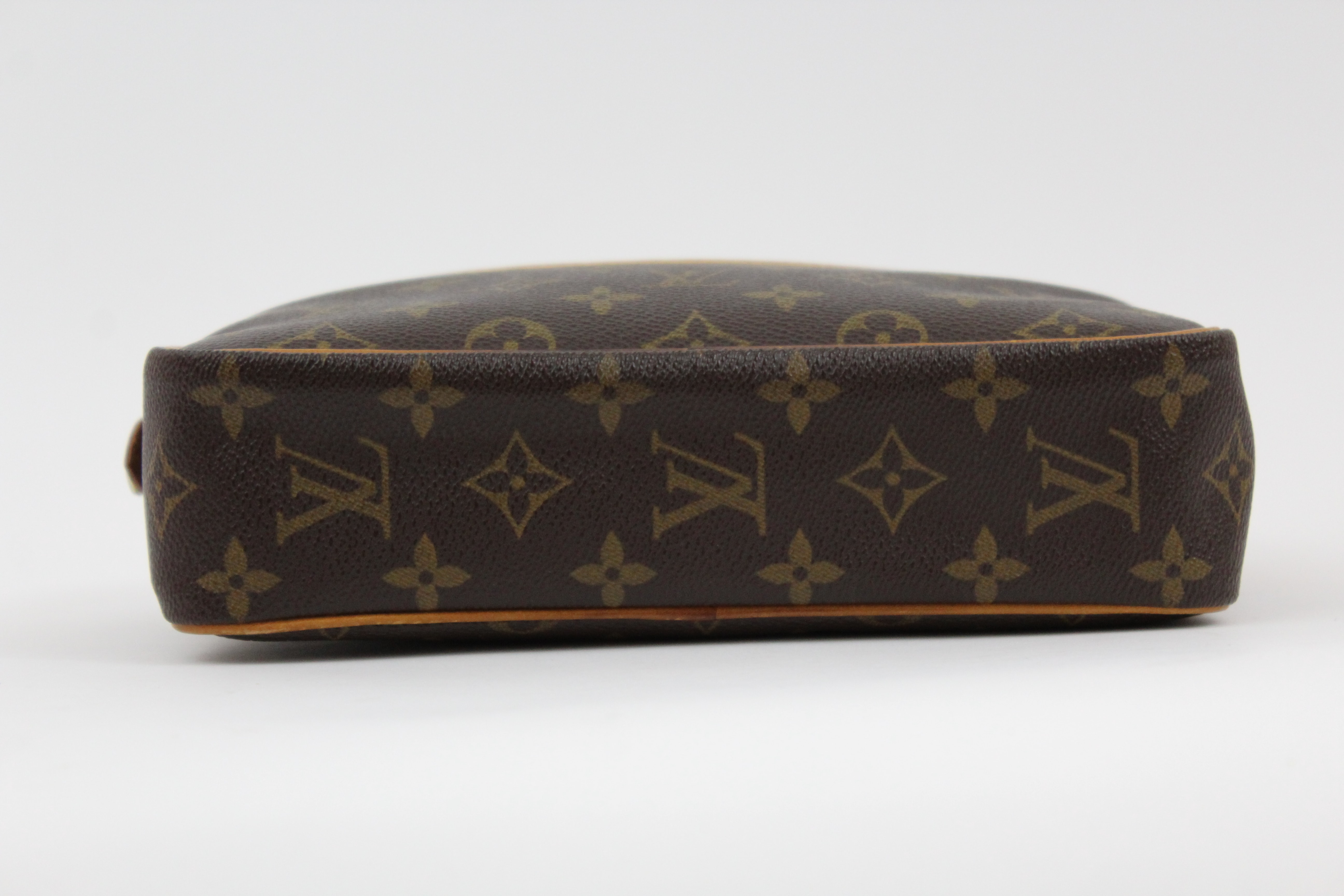 Cute as a clutch and turns into a handy toiletry bag for travel! Has one exterior pocket for easy access to the important stuff and one interior open pocket. Another timeless piece by Louis Vuitton