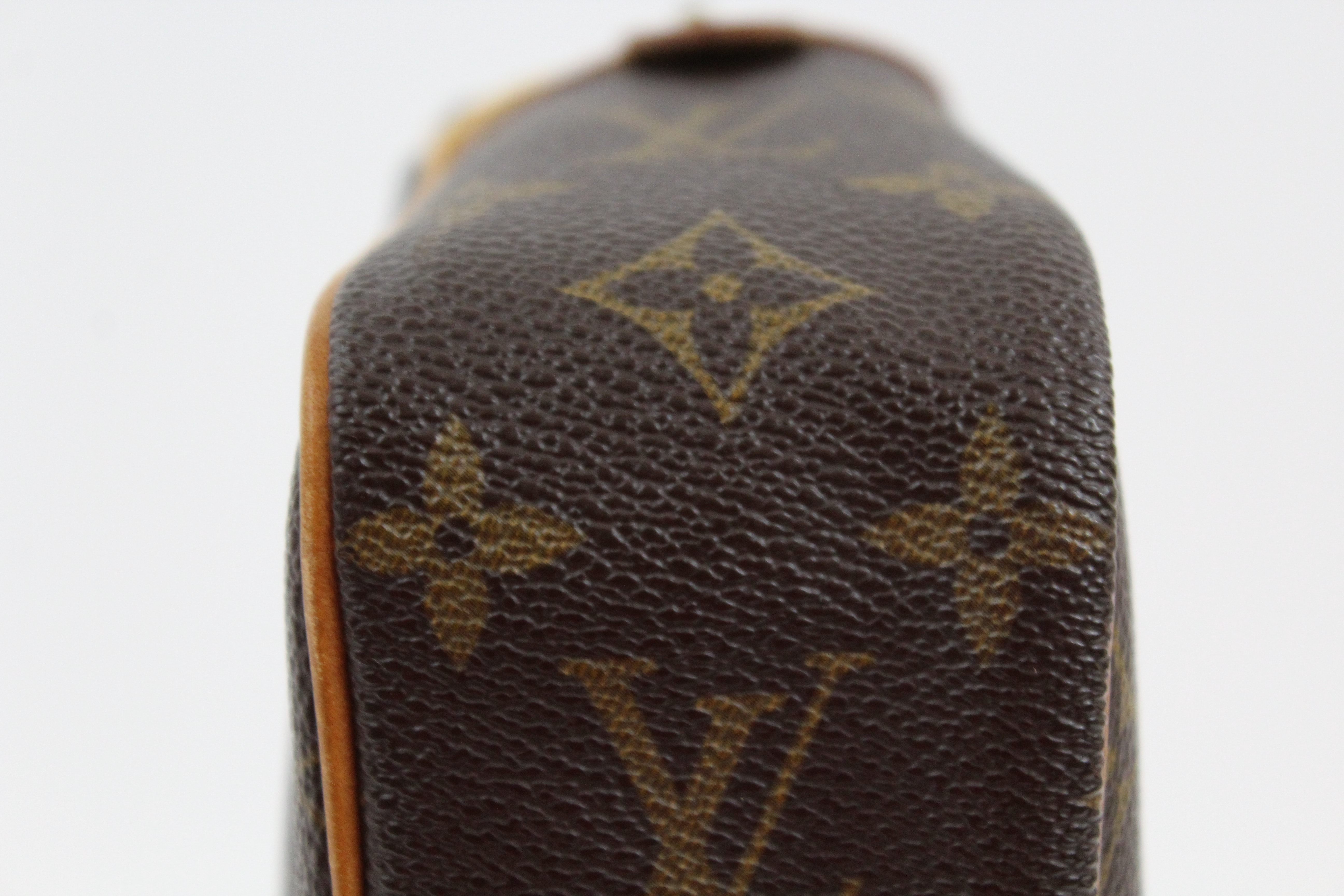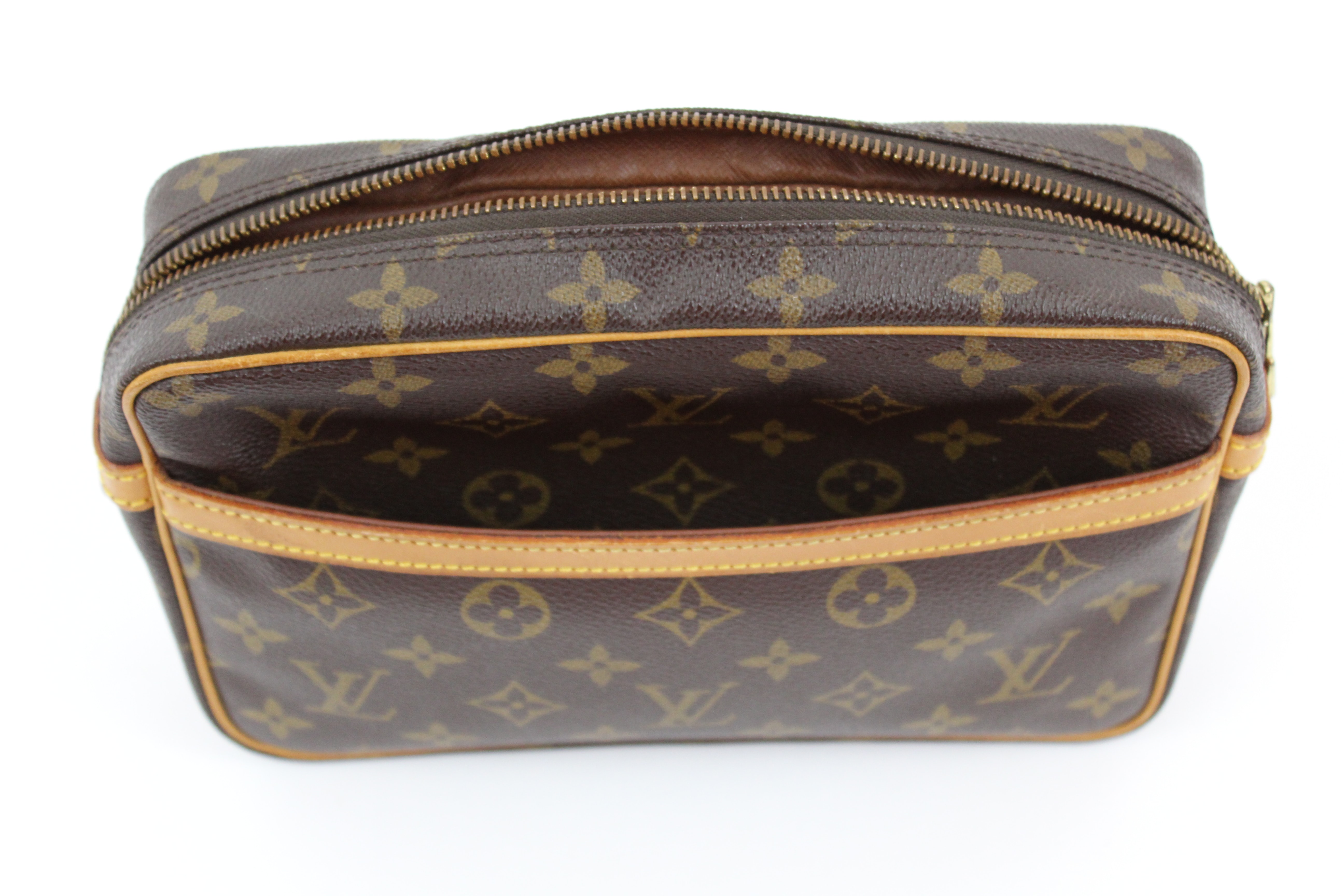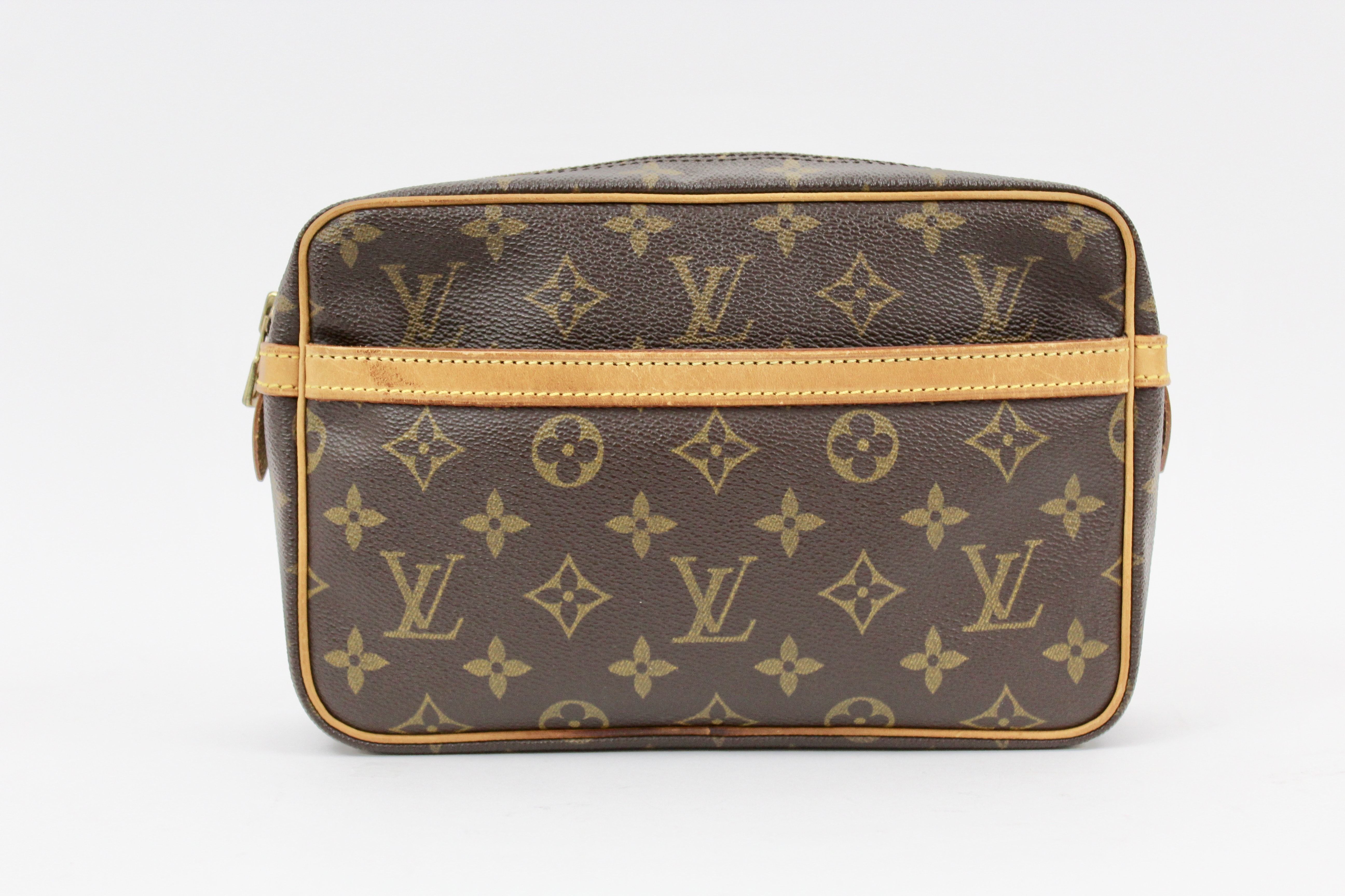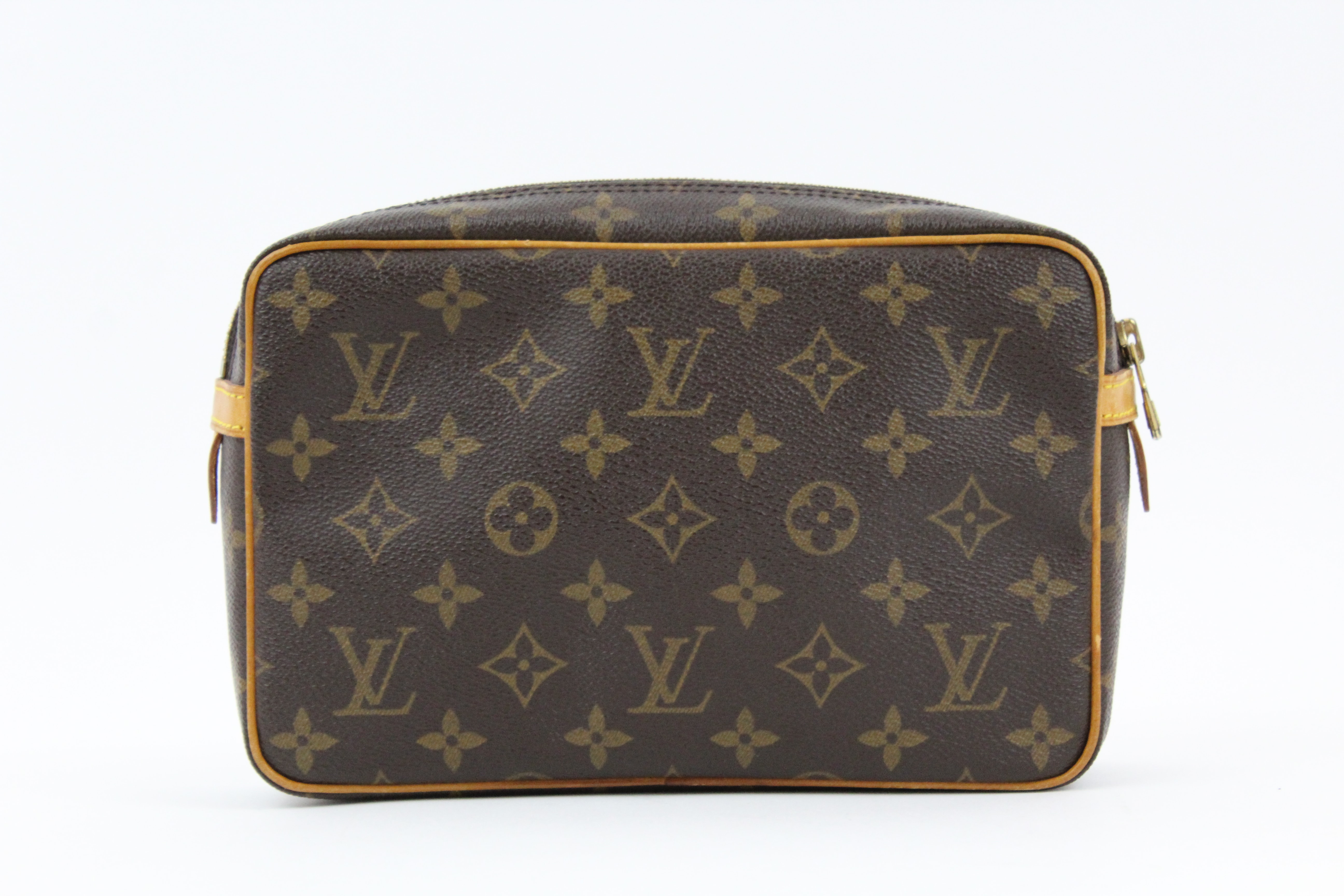 Cute as a clutch and turns into a handy toiletry bag for travel! Has one exterior pocket for easy access to the important stuff and one interior open pocket. Another timeless piece by Louis Vuitton