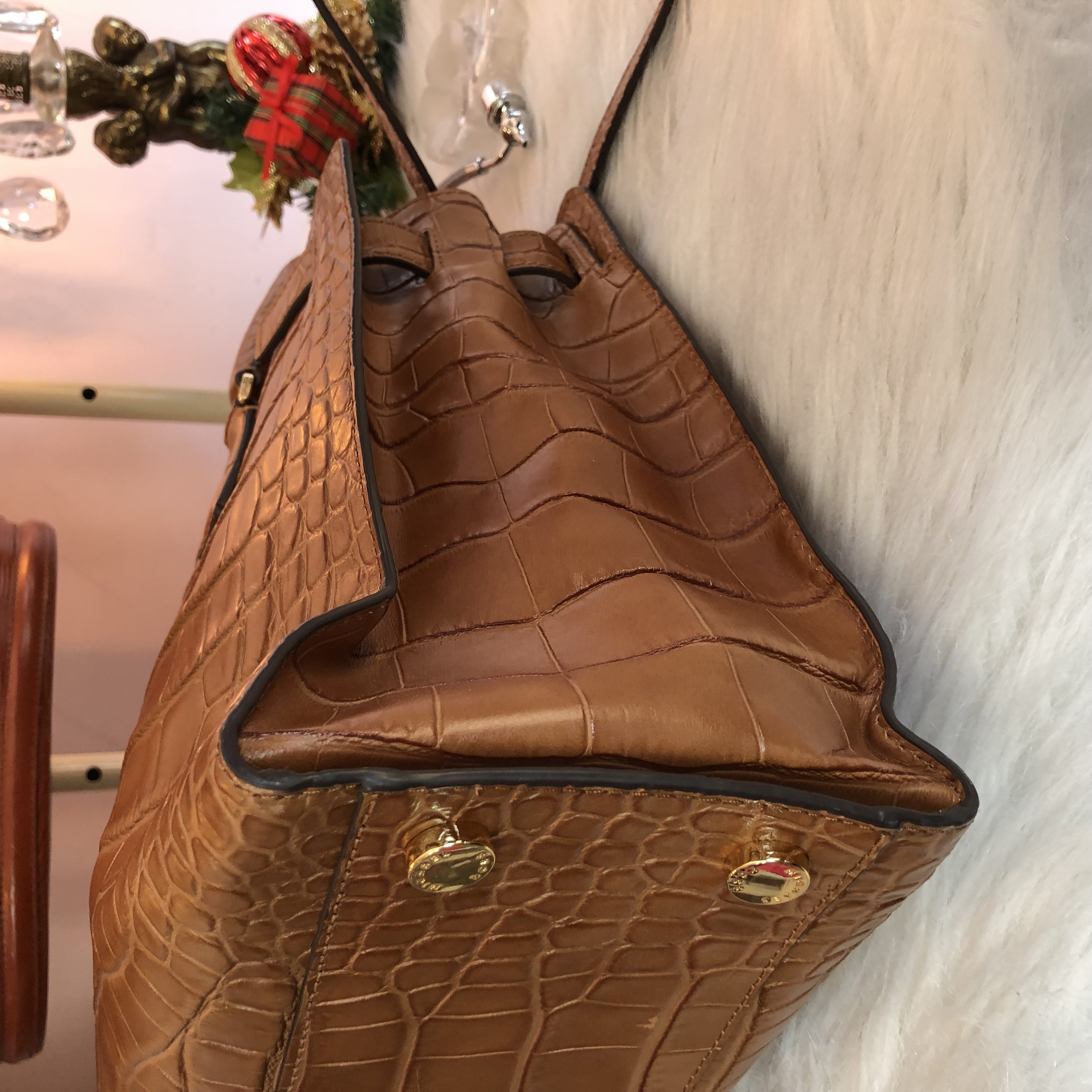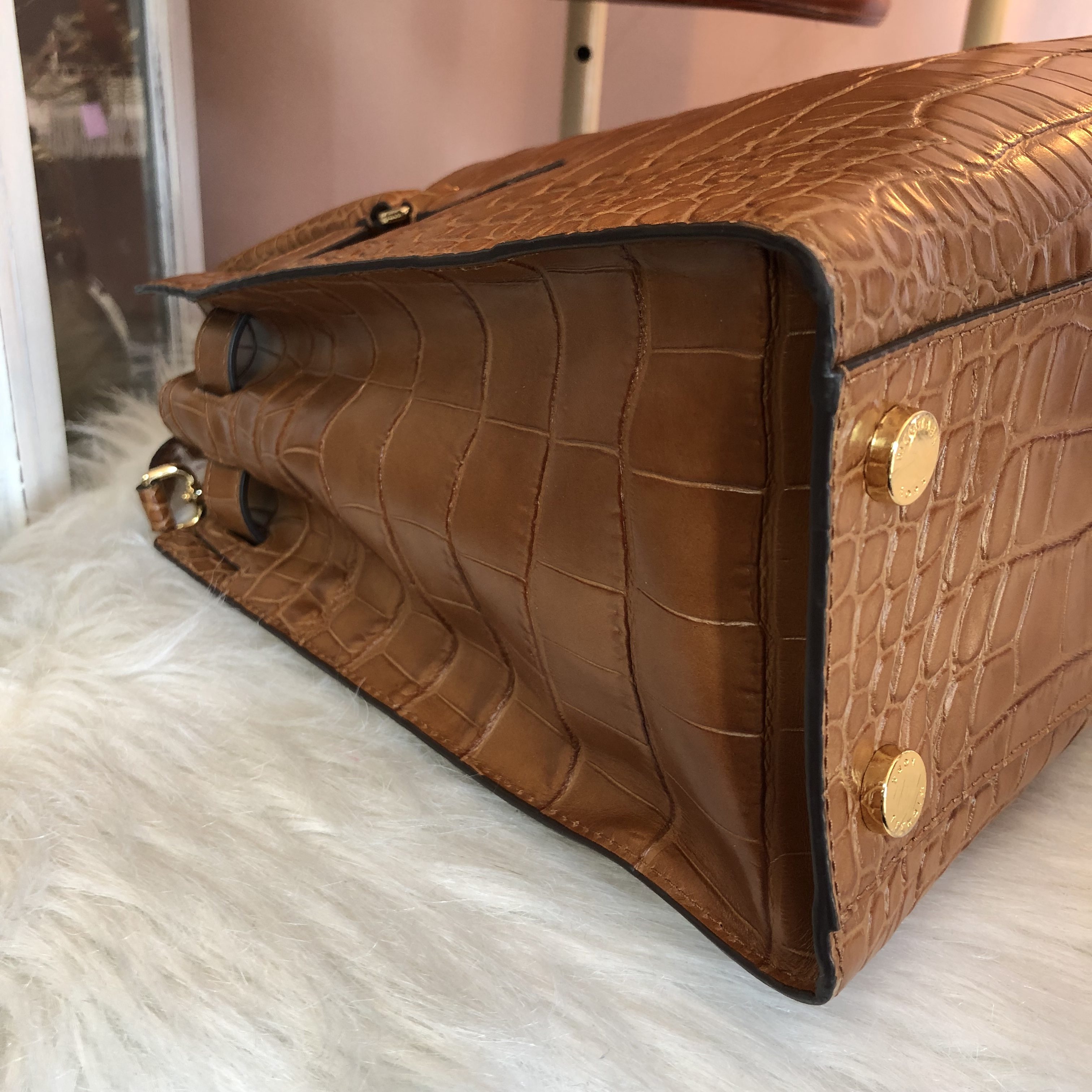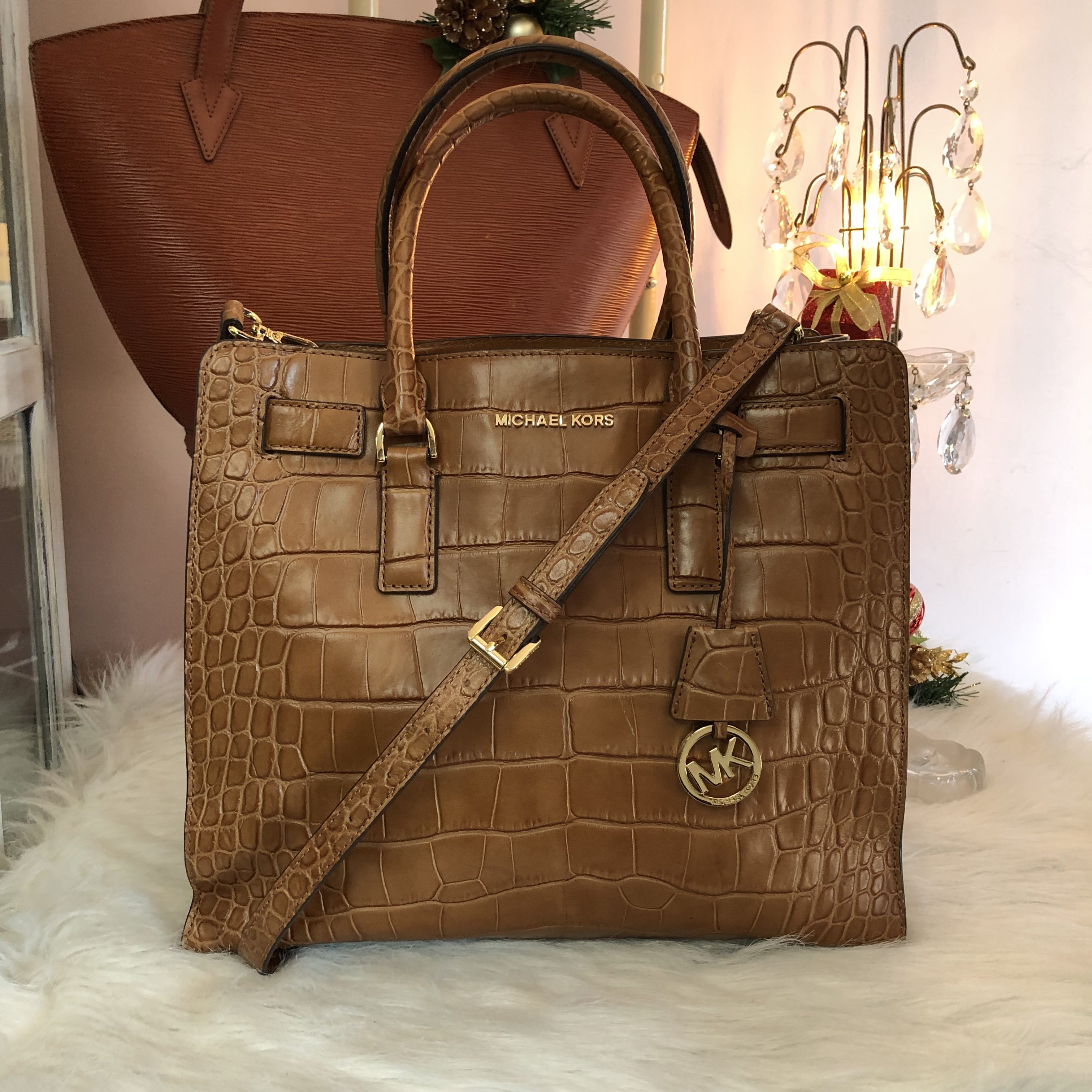 Beautiful Michael Kors Hamilton bag with crocodile 🐊 embossed print in a beautiful walsnuy color. Roomy with plenty of pockets and 1 zippered middle compartment.