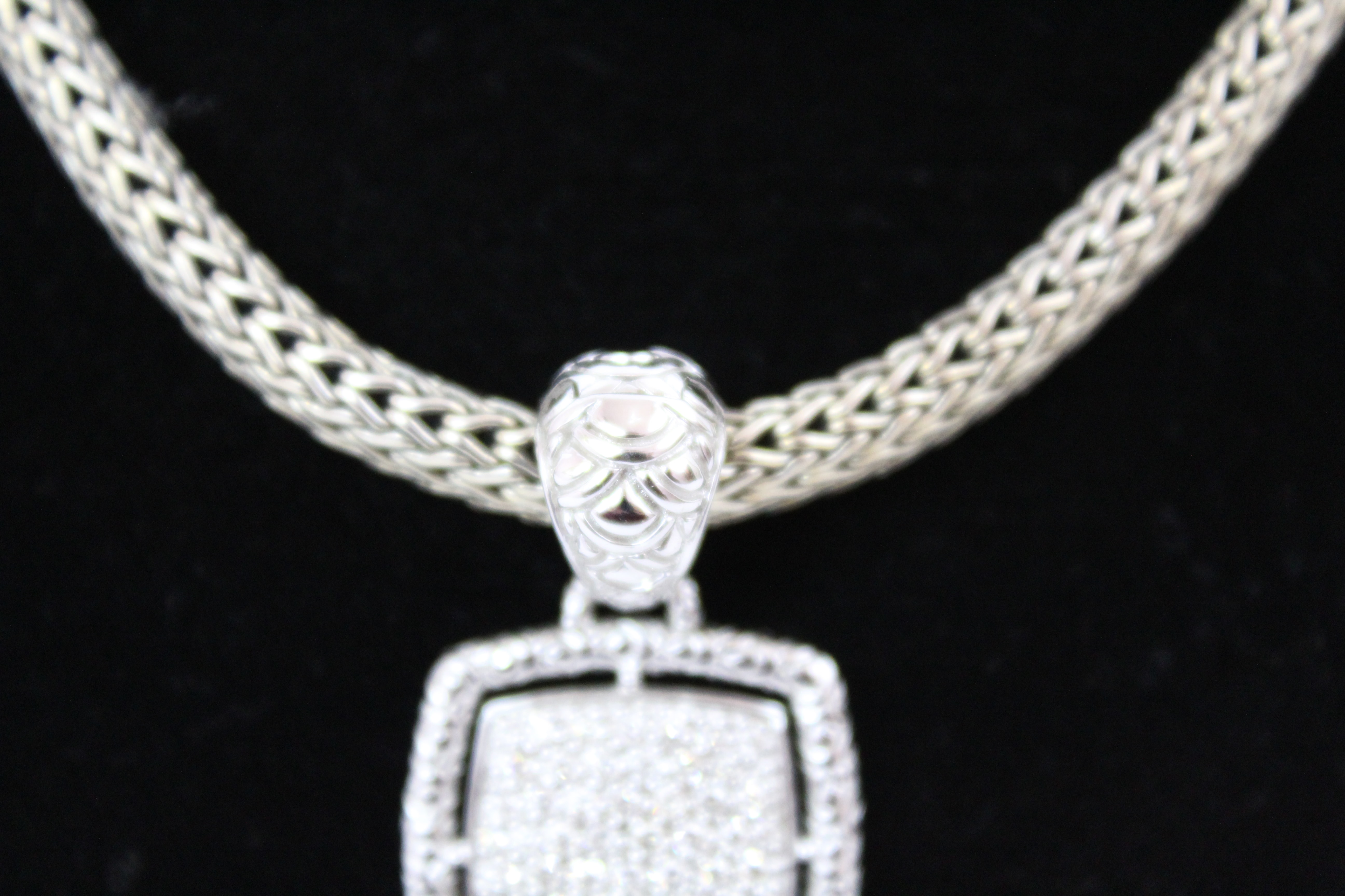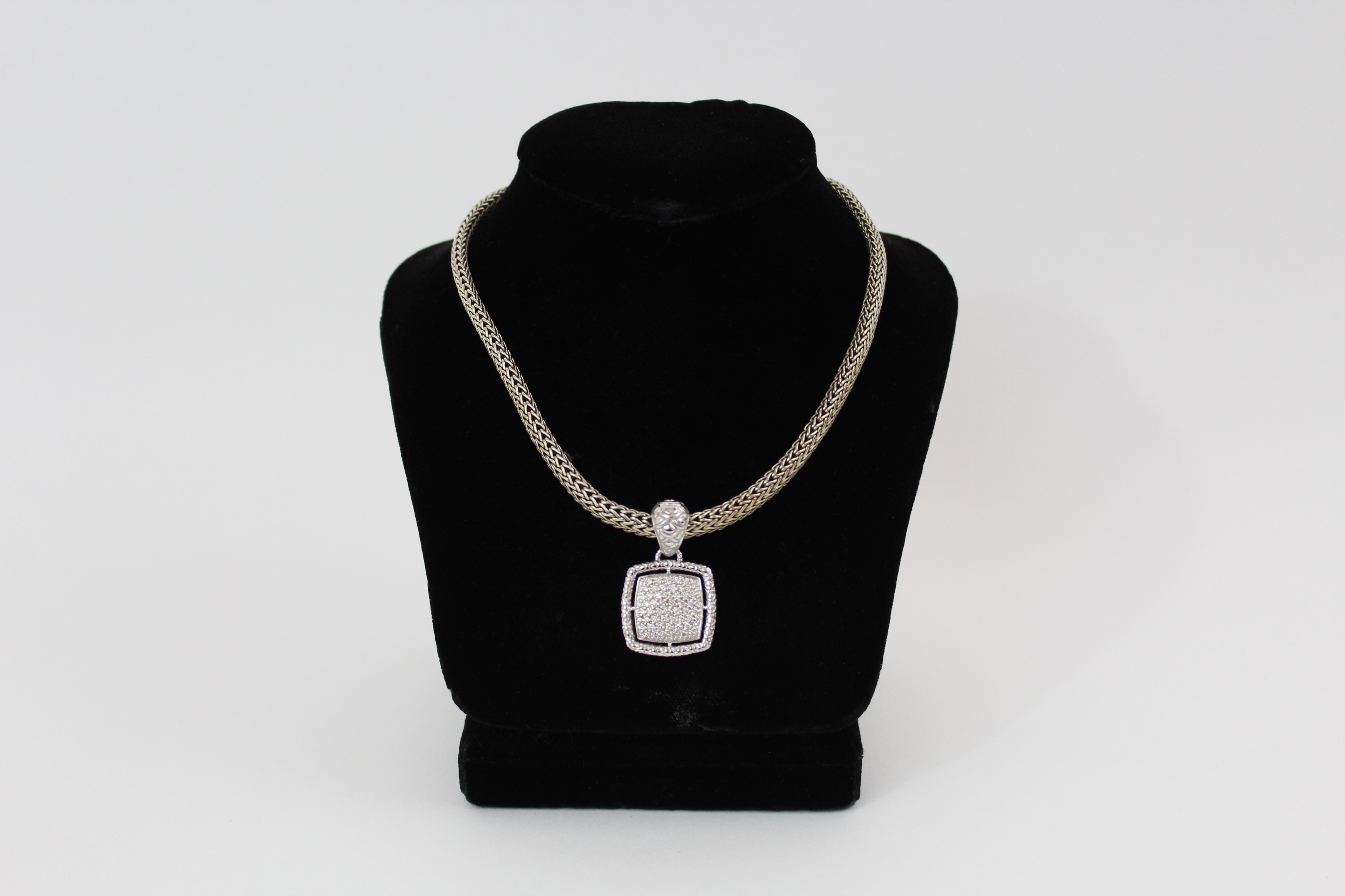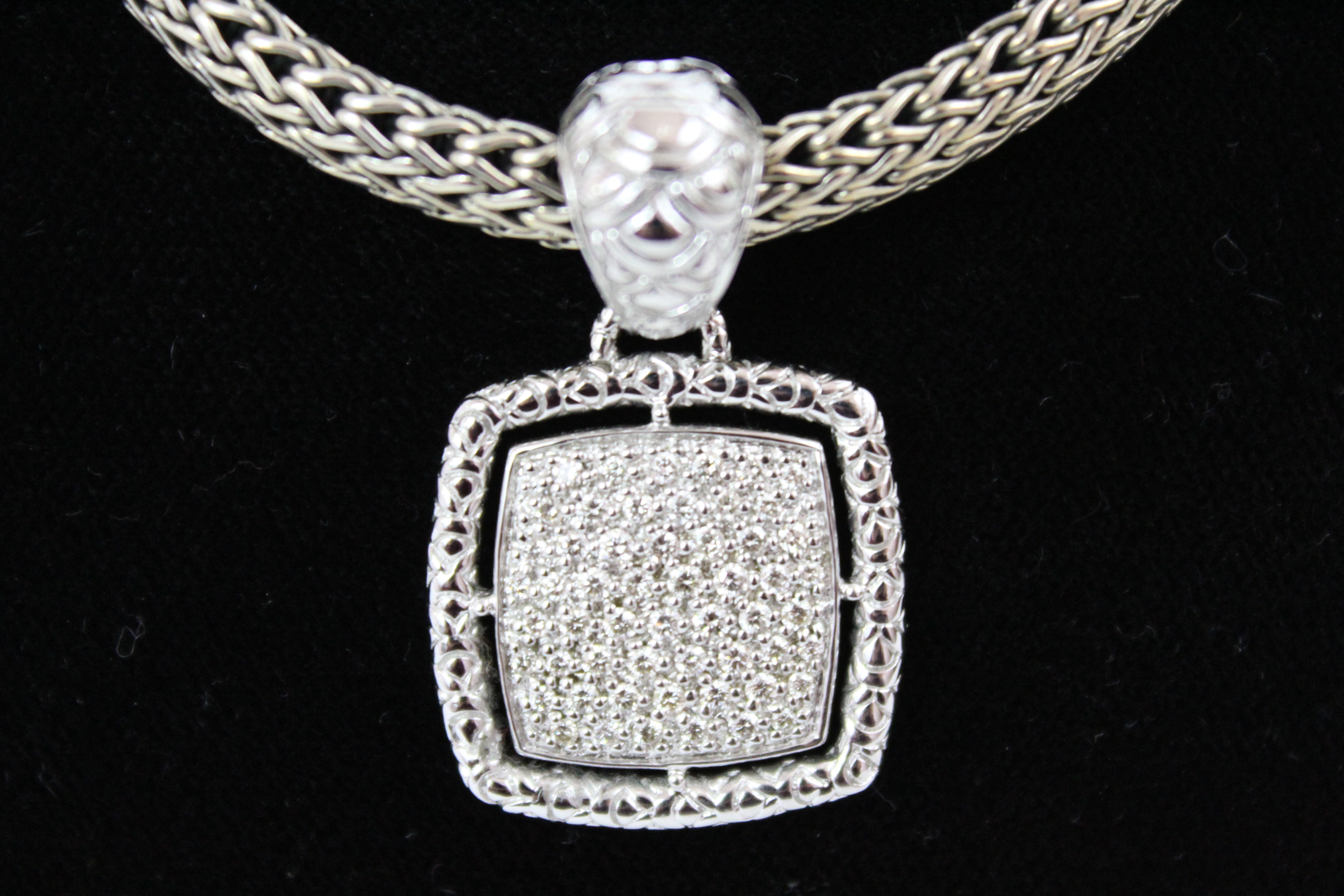 John Hardy classic weave 16″ necklace sterling silver and JOHN HARDY PAVÉ DIAMOND PENDANT