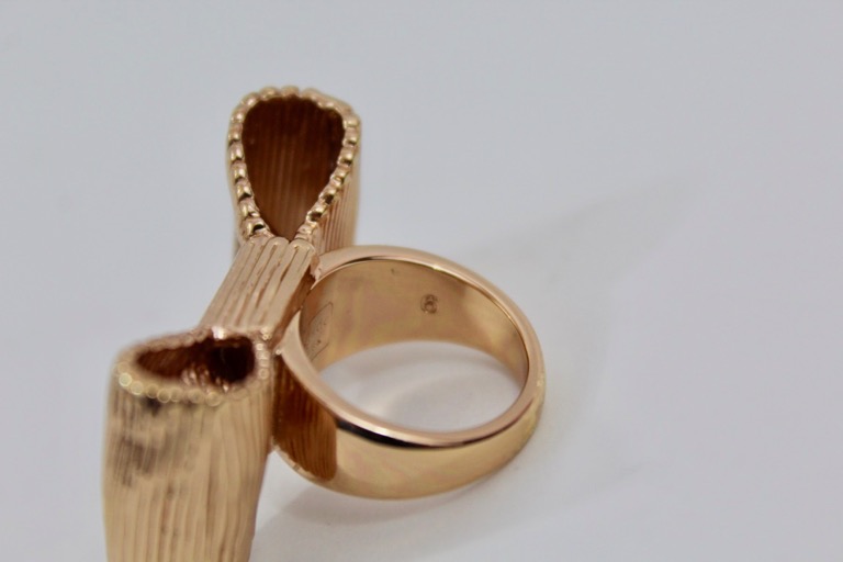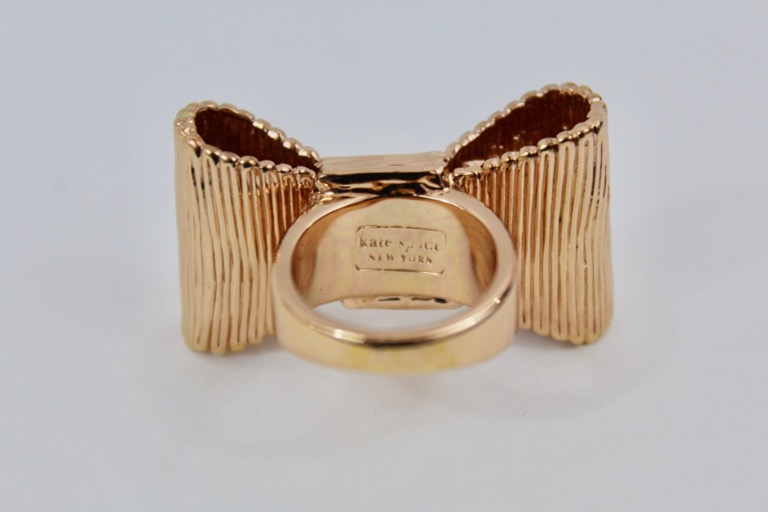 Adorable Kate Spade bow statement ring in a rose gold tone.