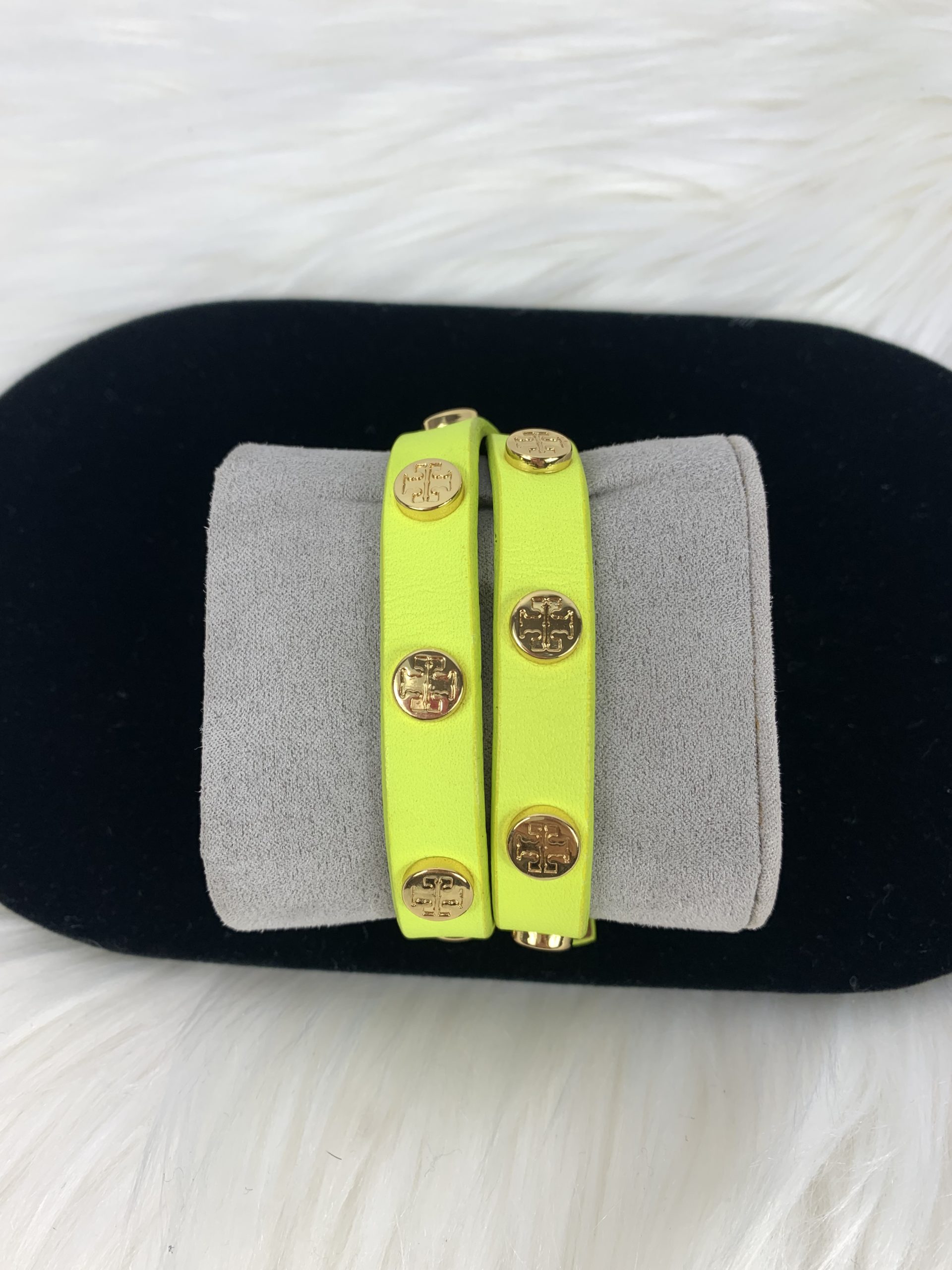 Tory Burch Neon Yellow Double Leather Logo Bracelet