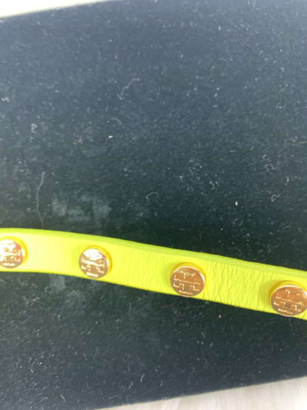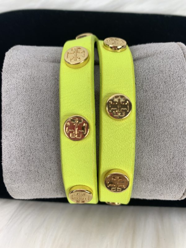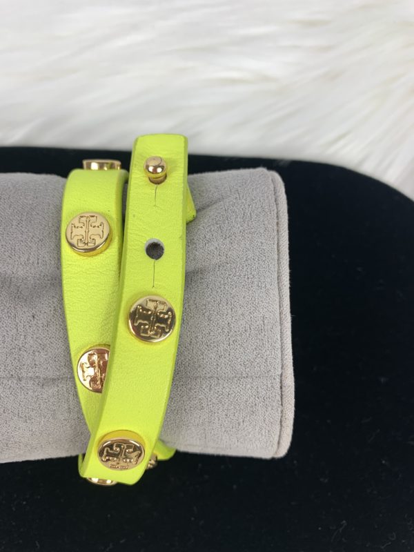 Tory Burch Neon Yellow Double Leather Logo Bracelet