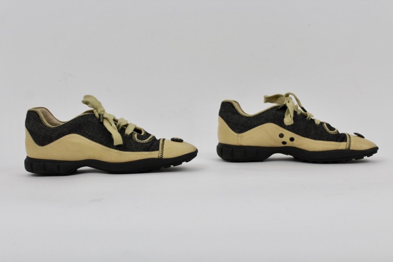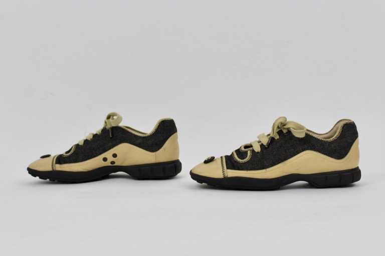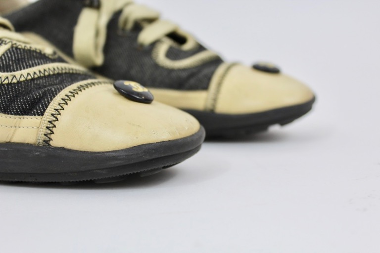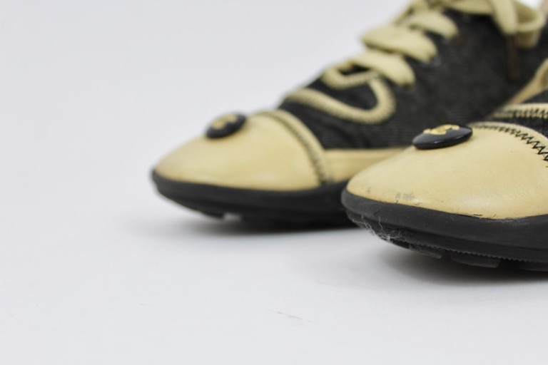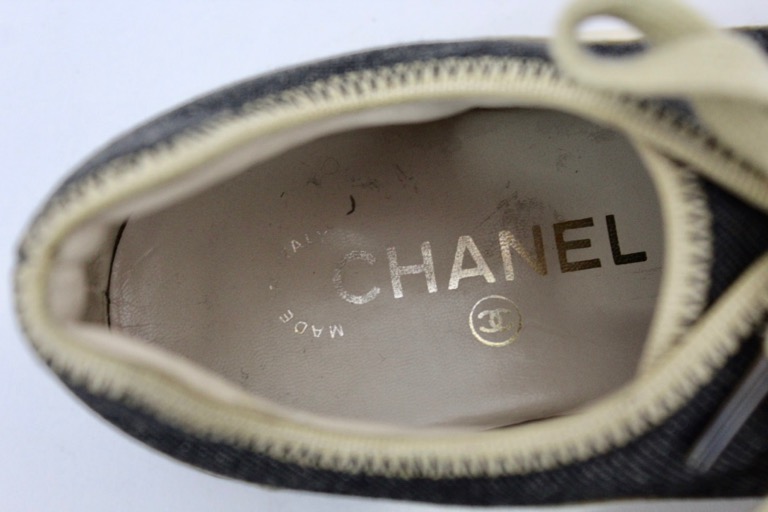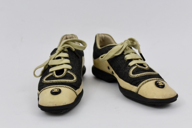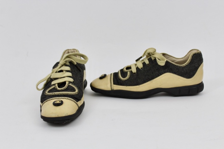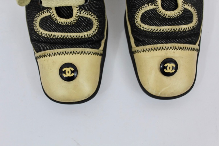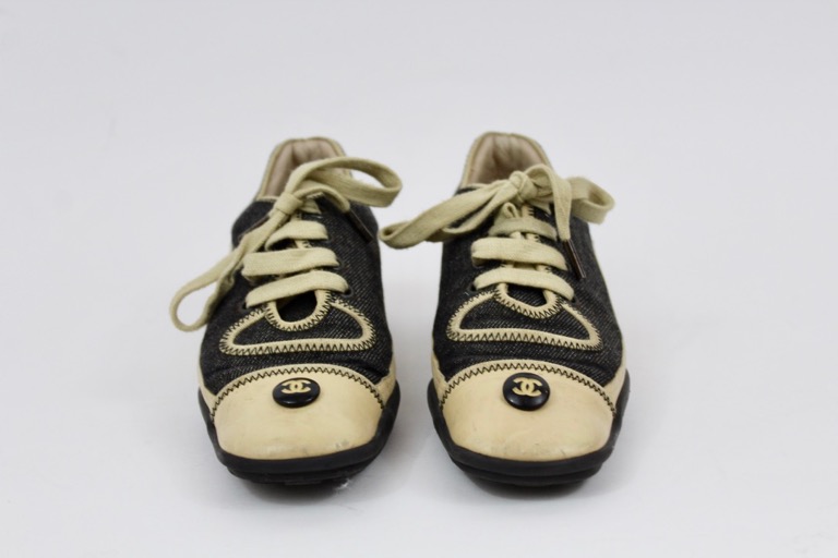 CHANEL black denim and lambskin leather sneakers