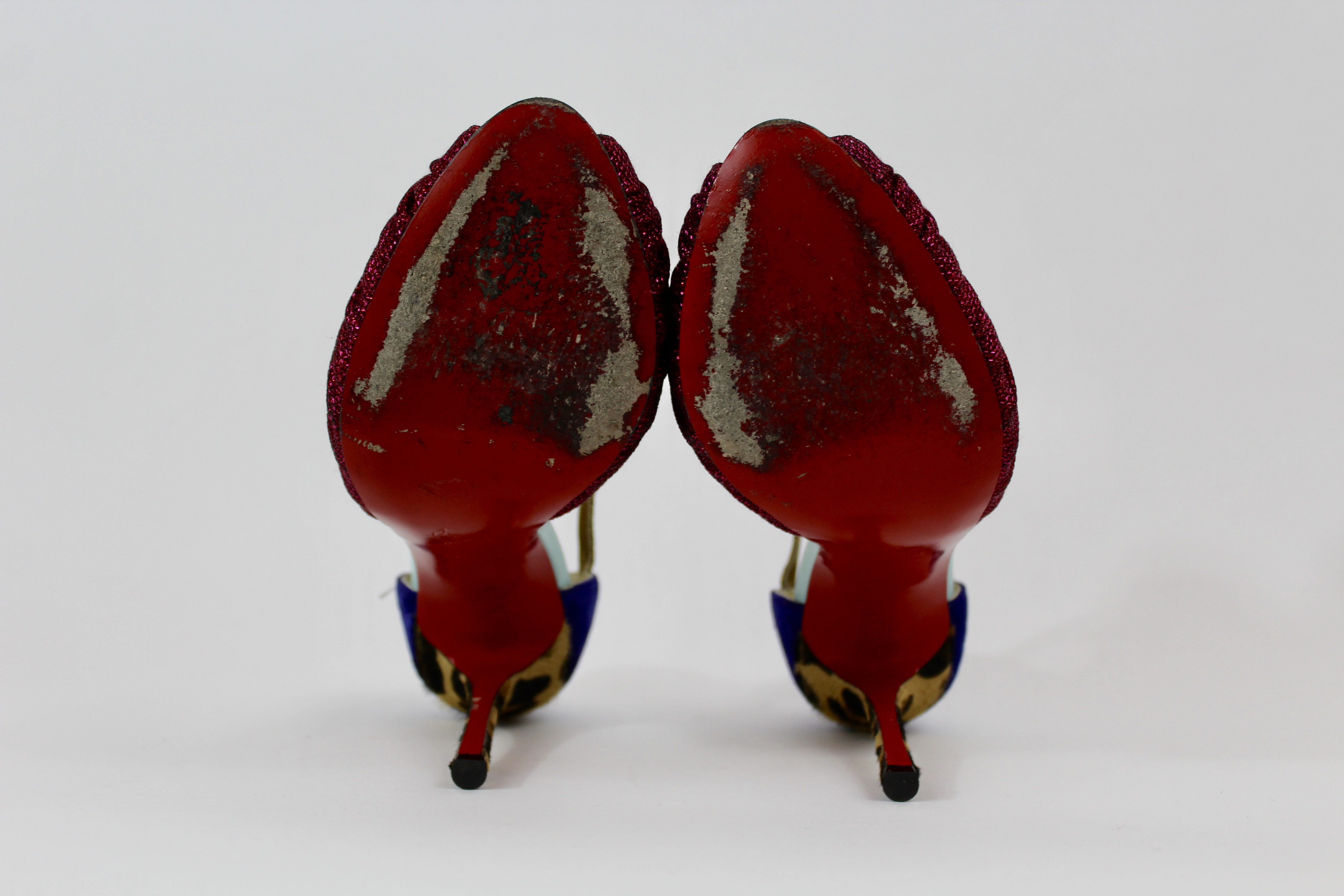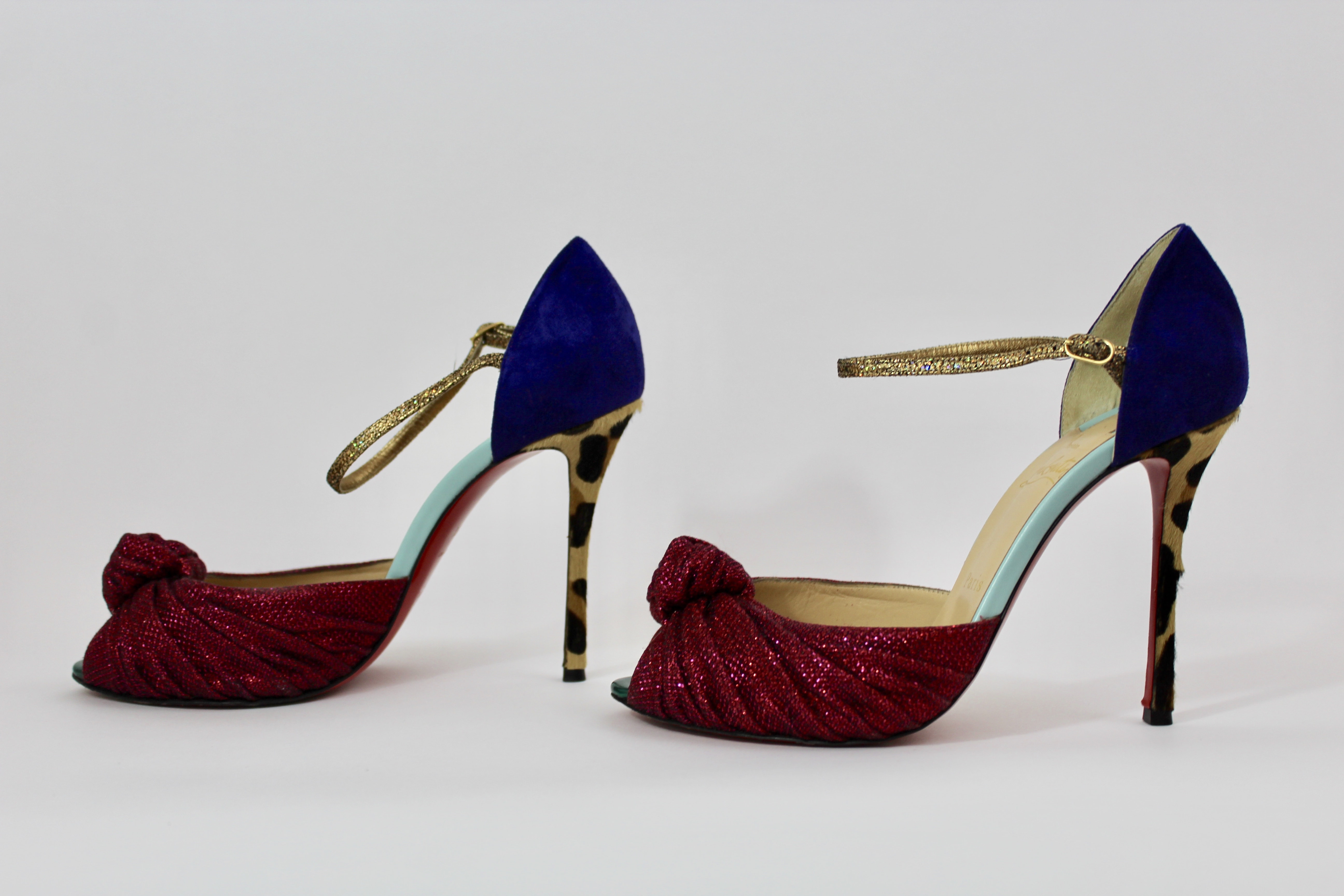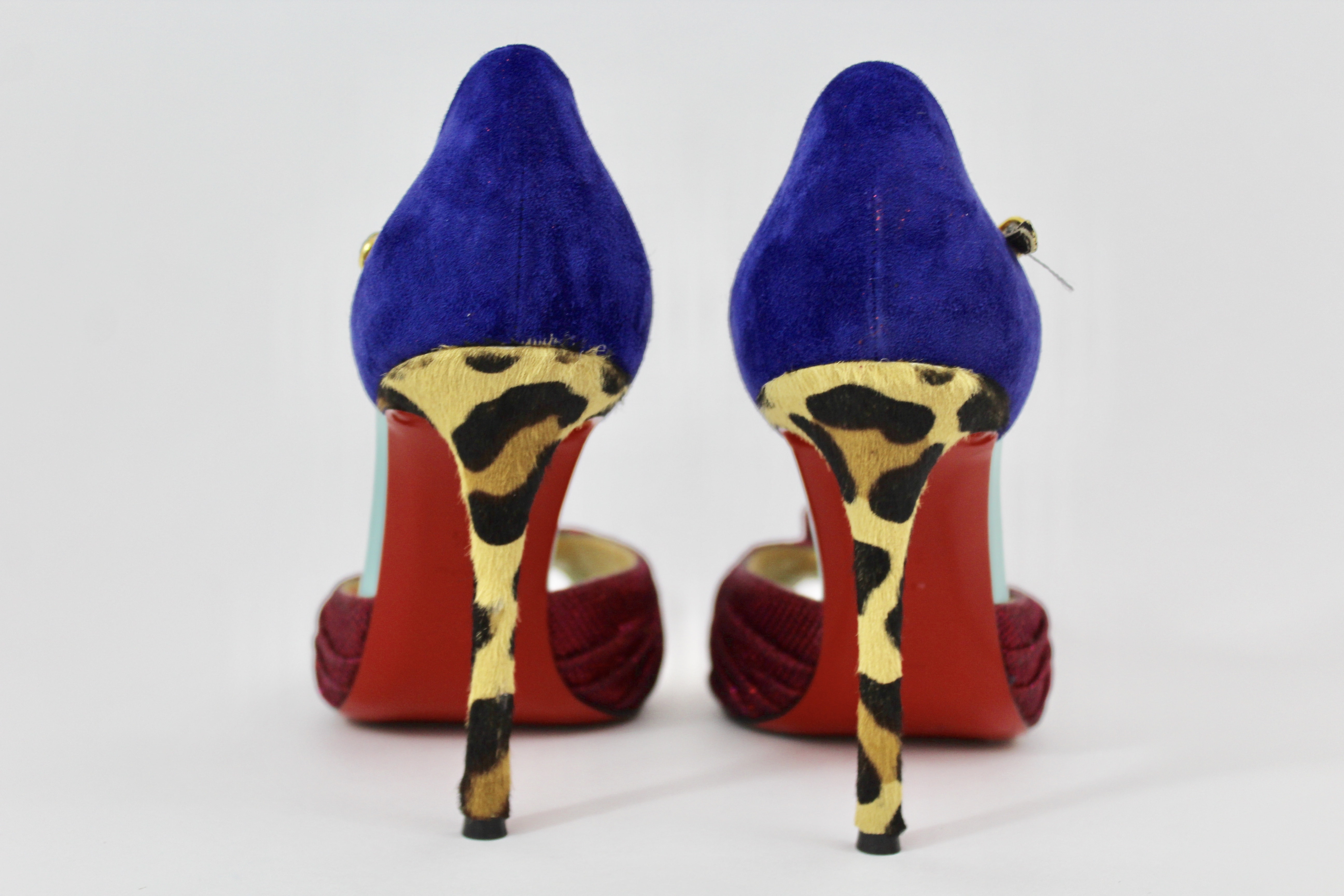 Christian Louboutin pink/indigo/leopard print heels