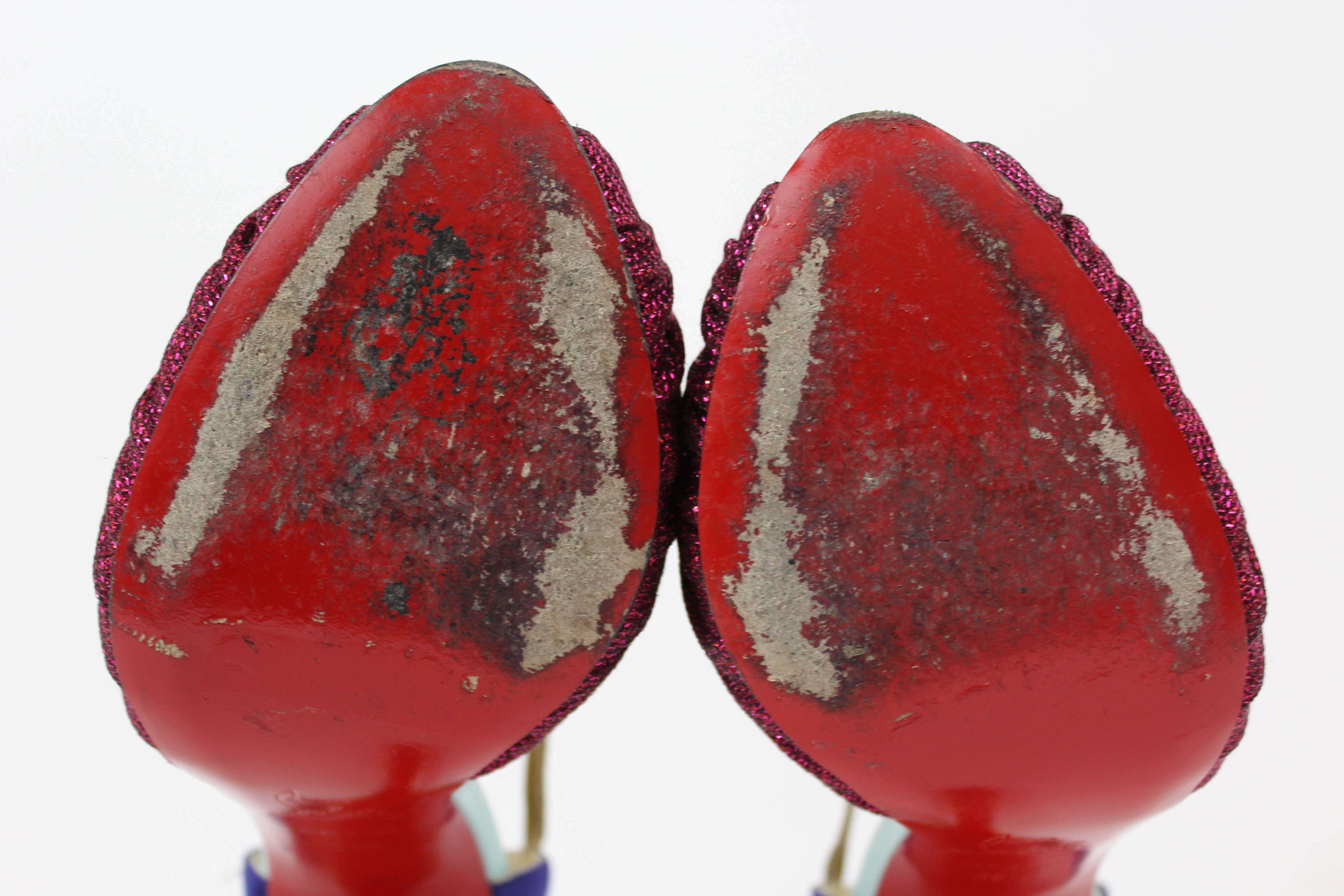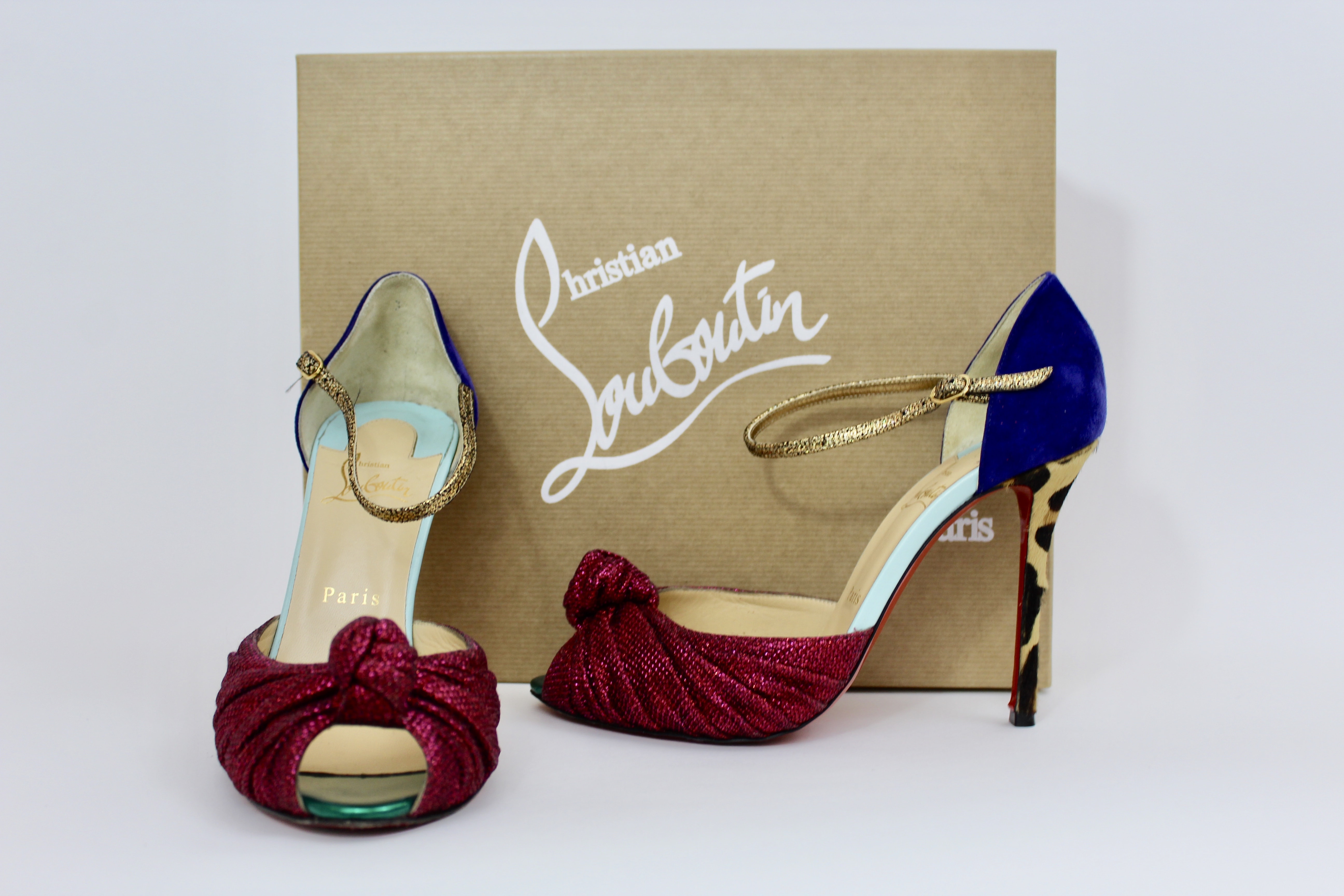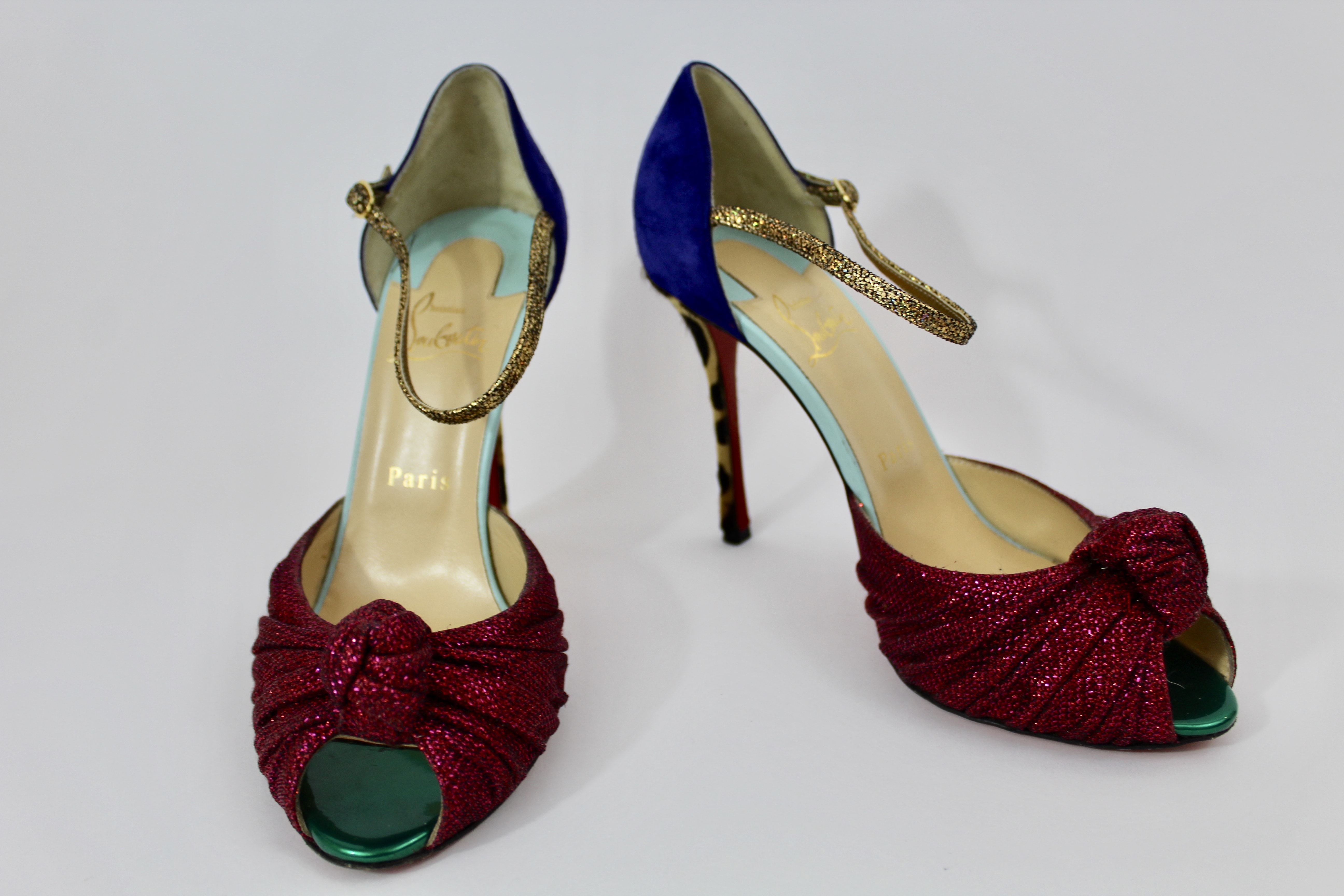 Christian Louboutin pink/indigo/leopard print heels