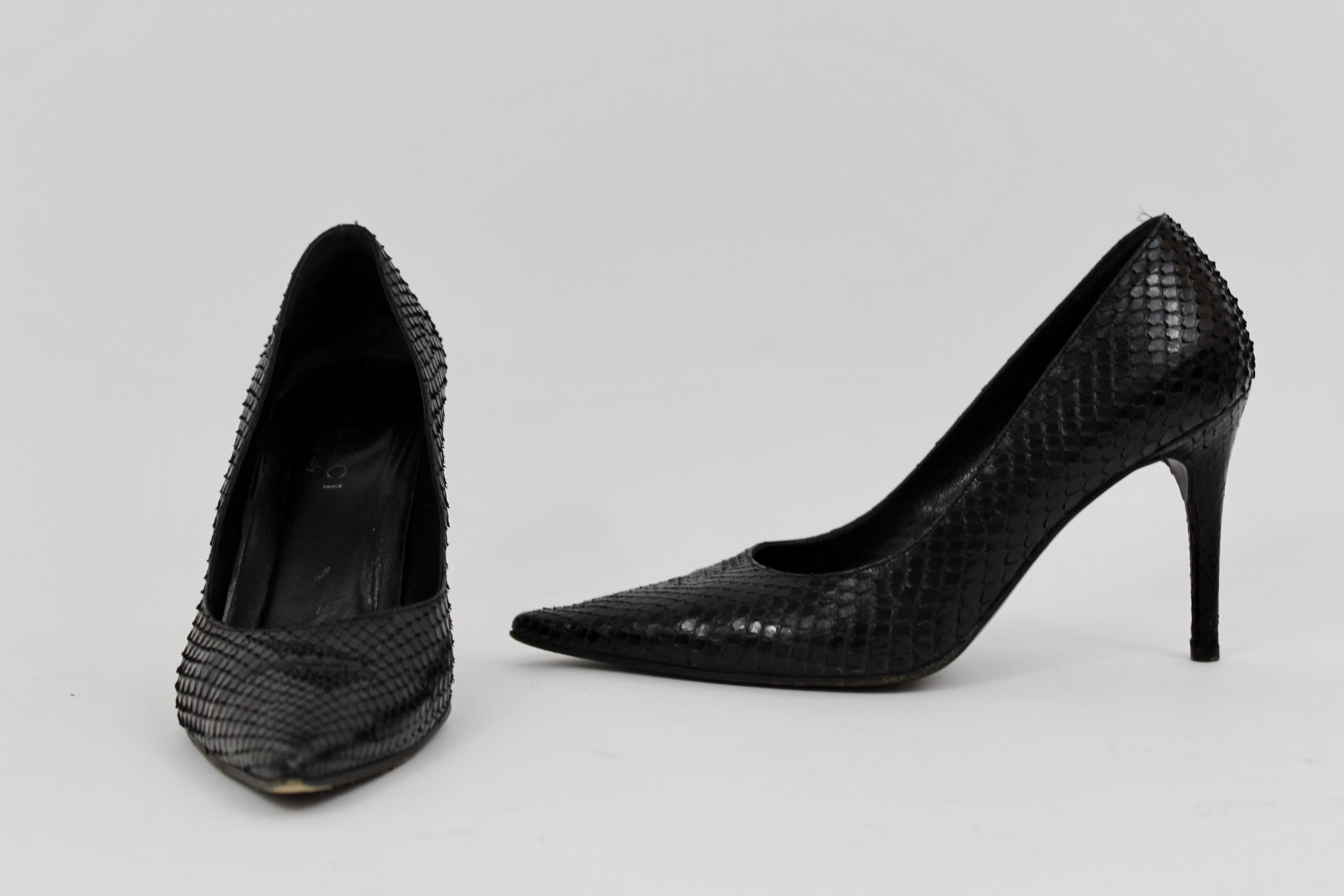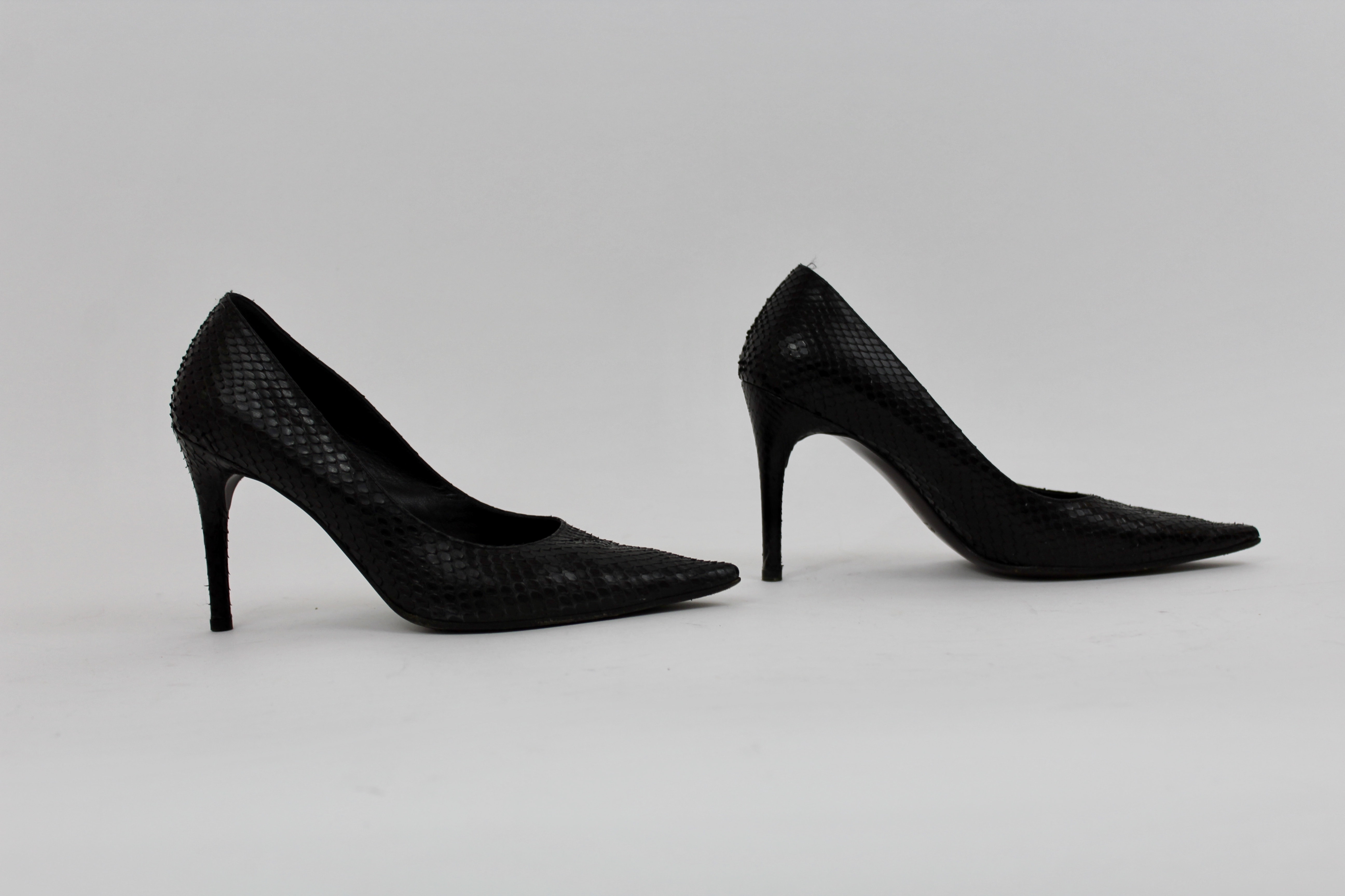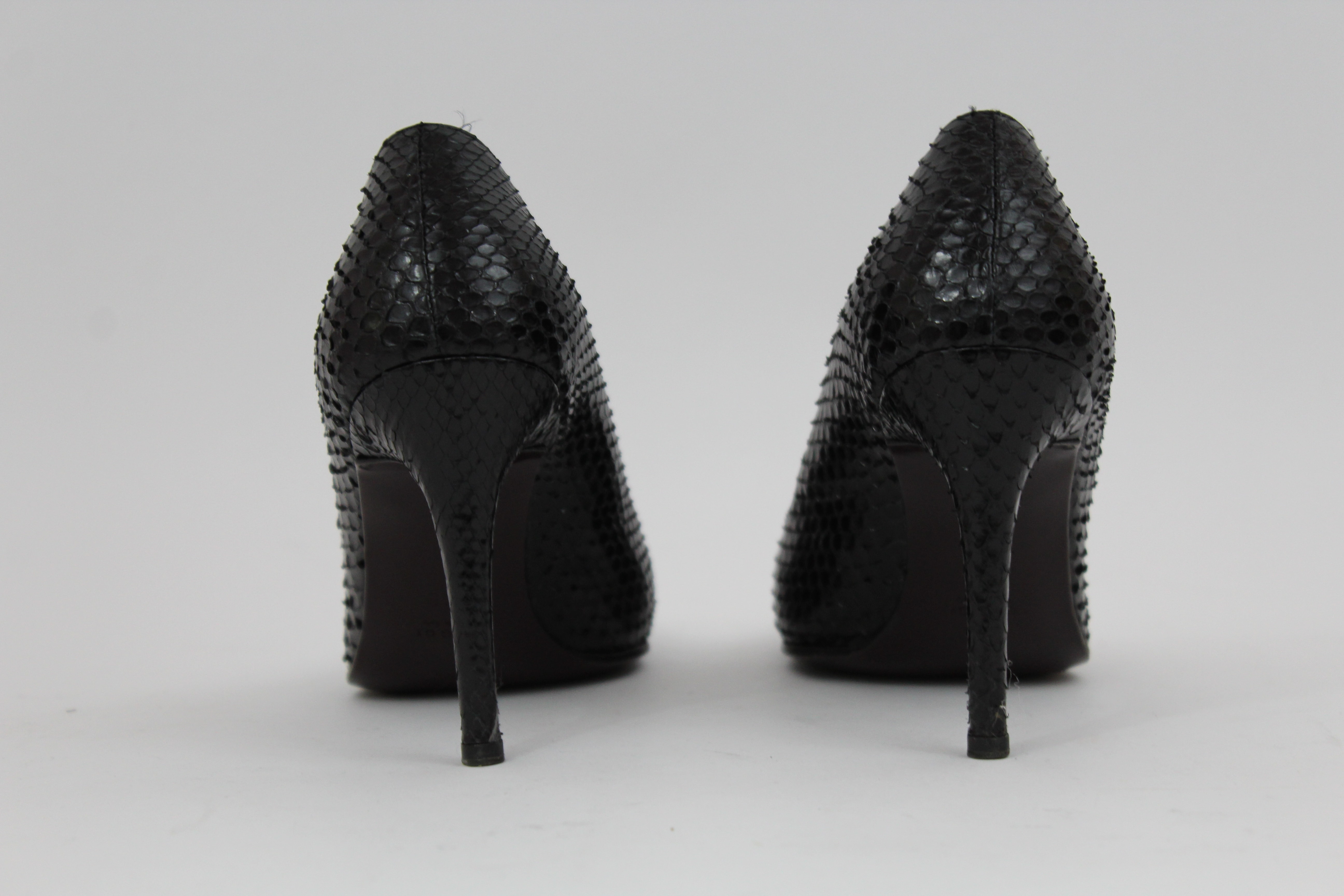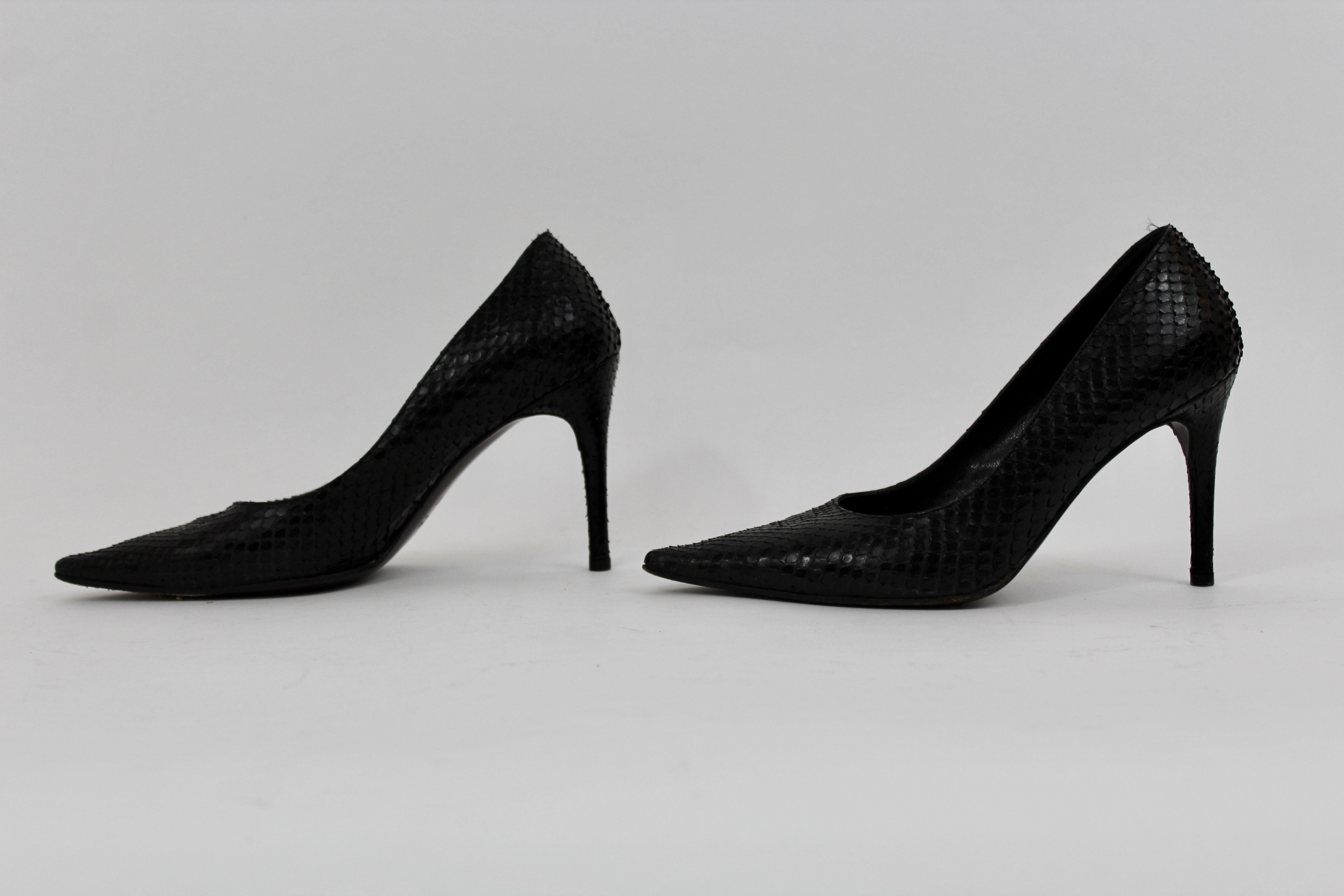 Make a statement in these black python pumps! A different addition to your black shoe collection.