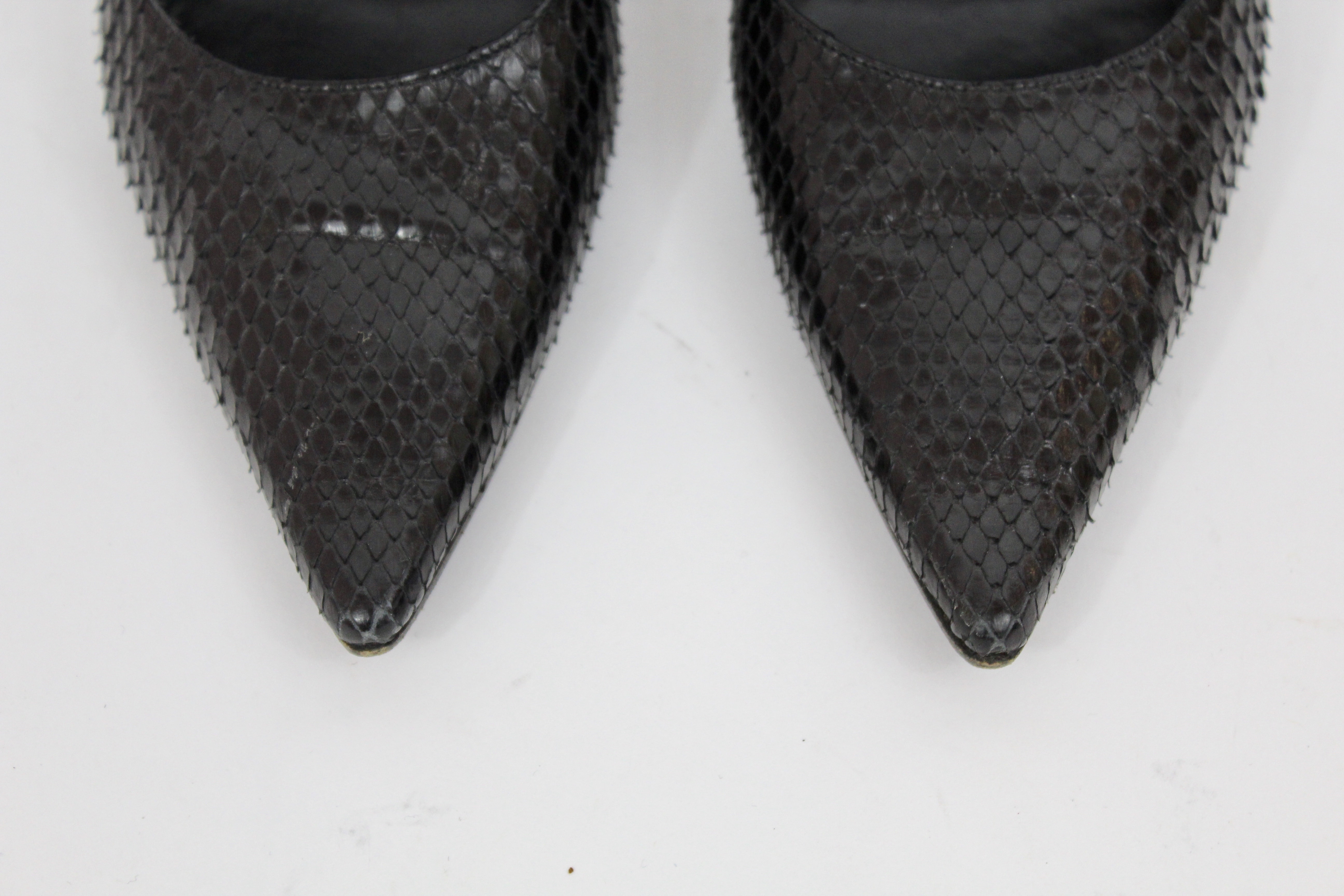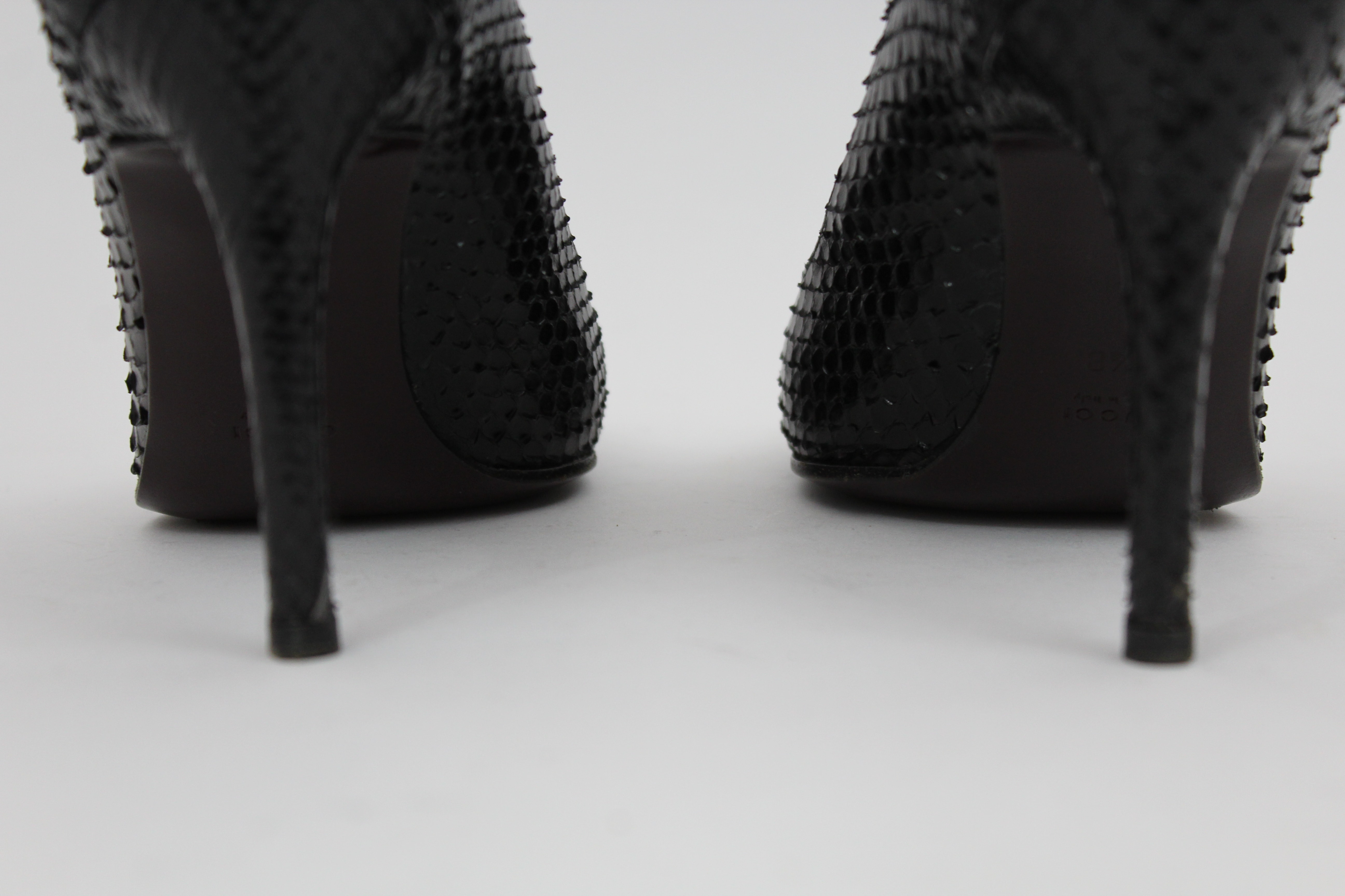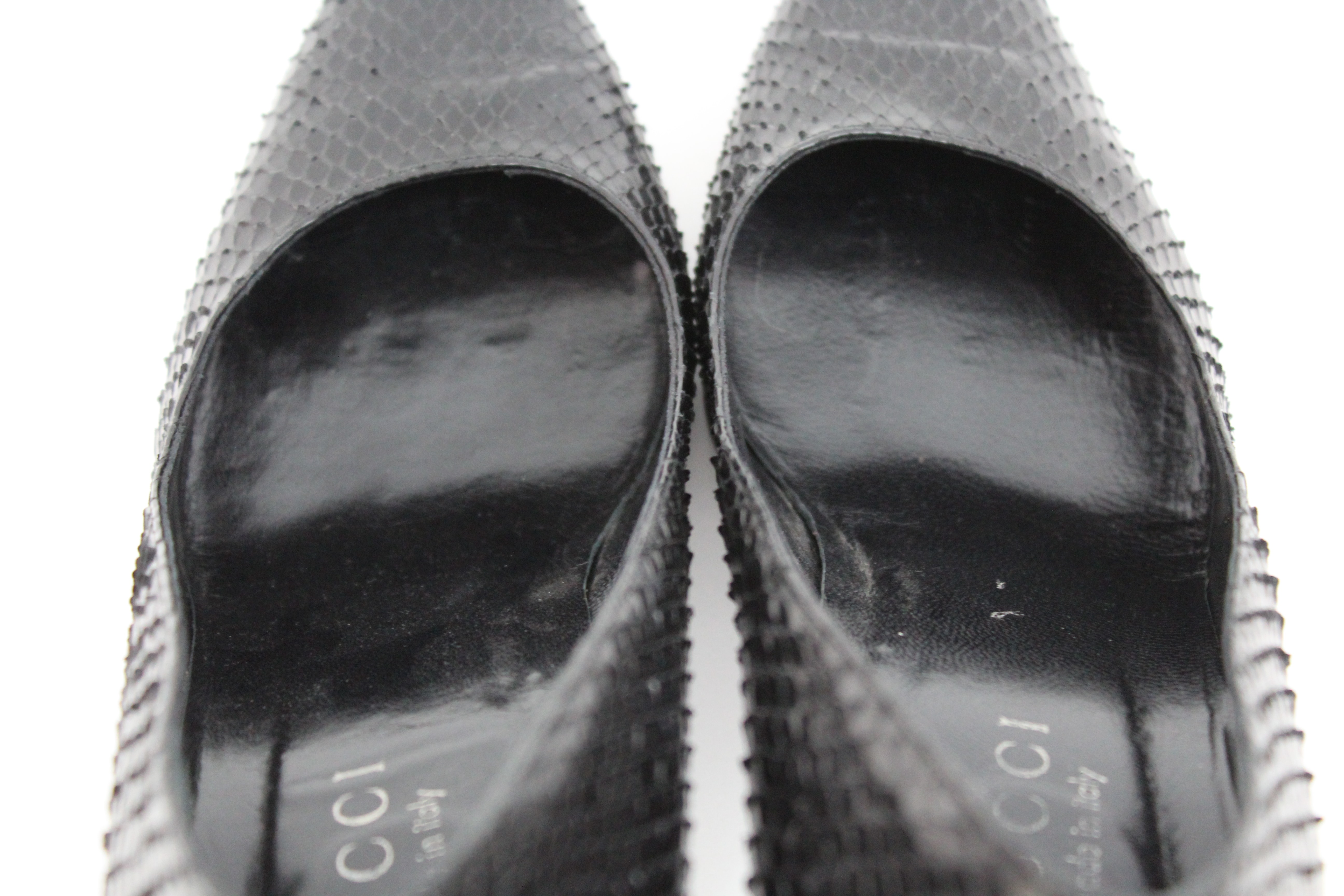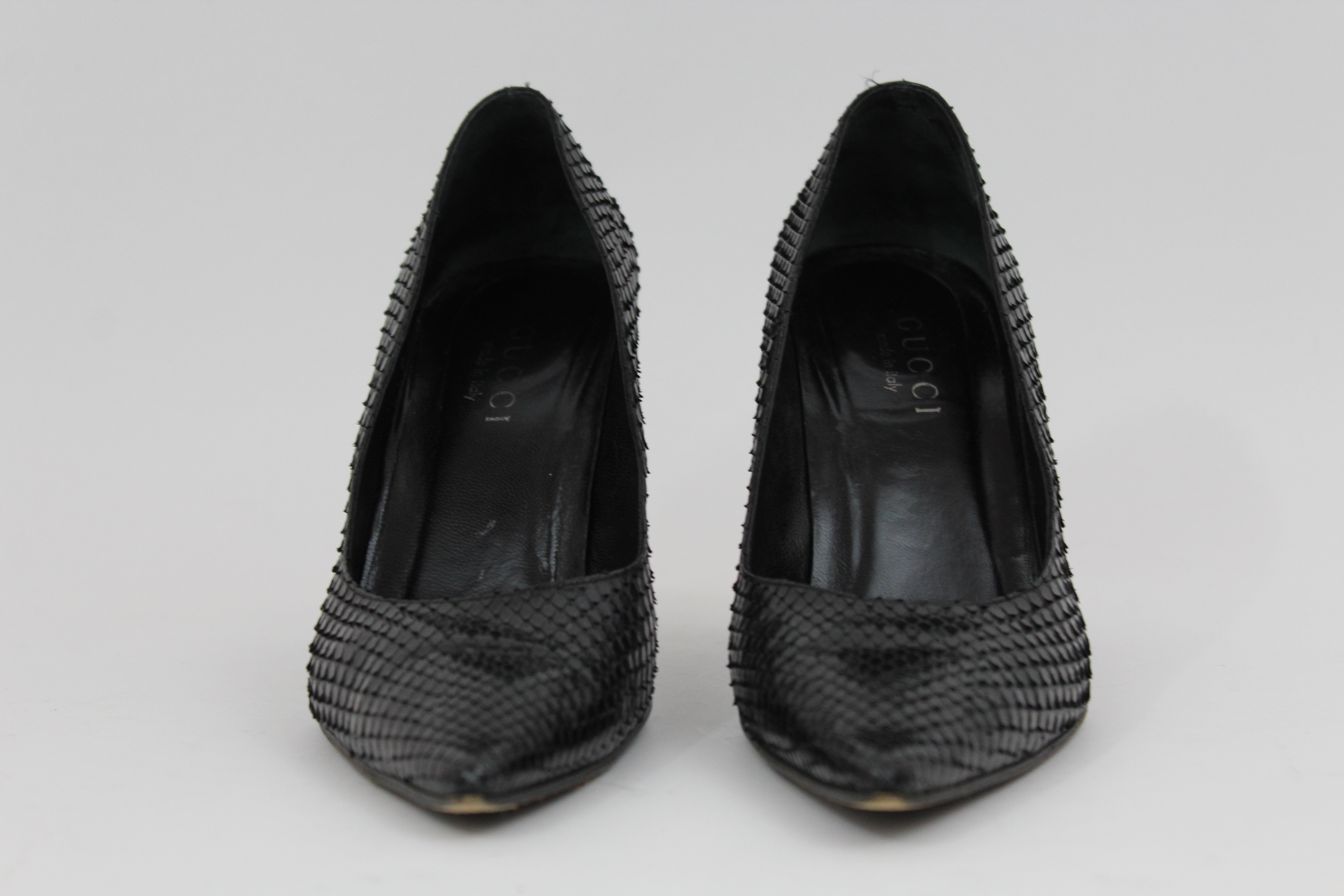 Make a statement in these black python pumps! A different addition to your black shoe collection.