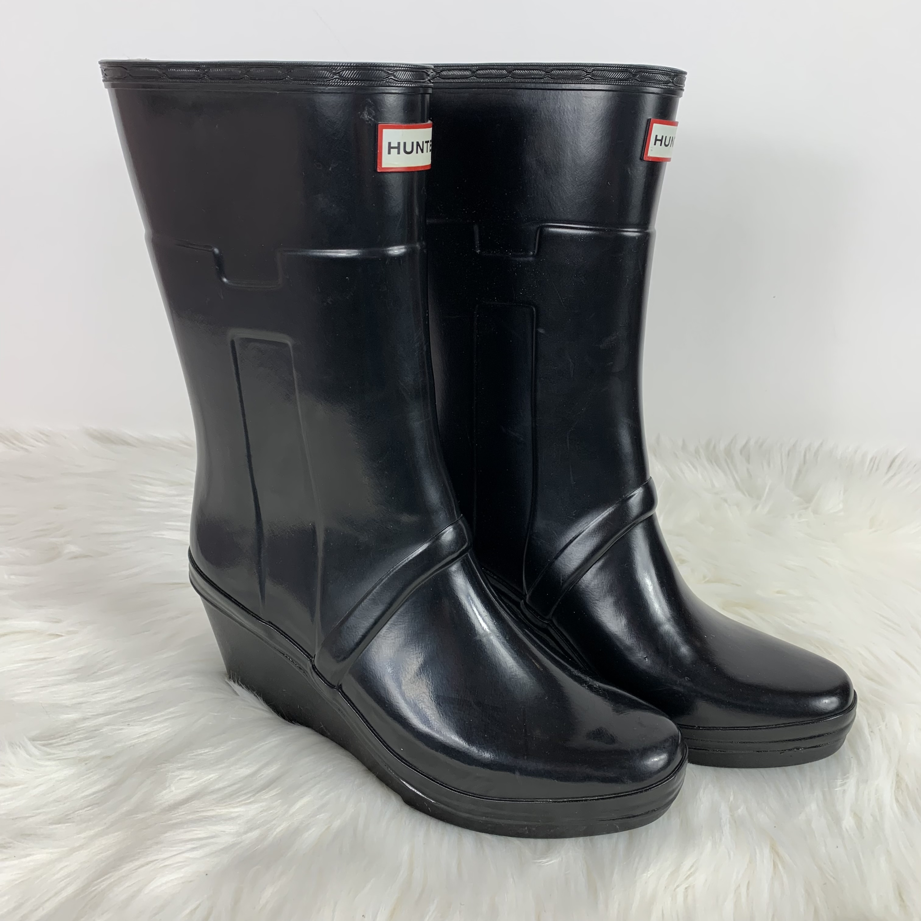 Hunter Black Wedge Rain Boots