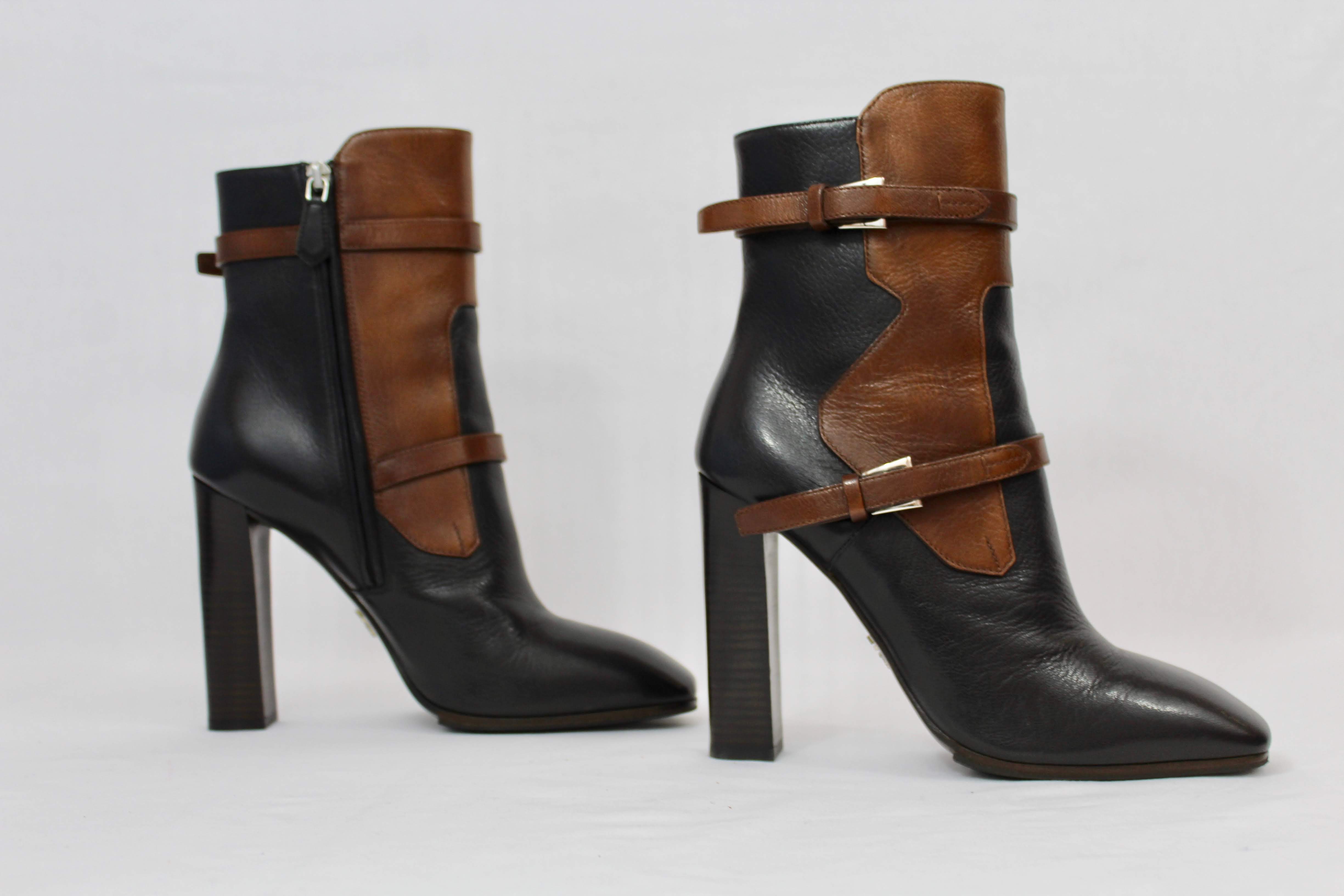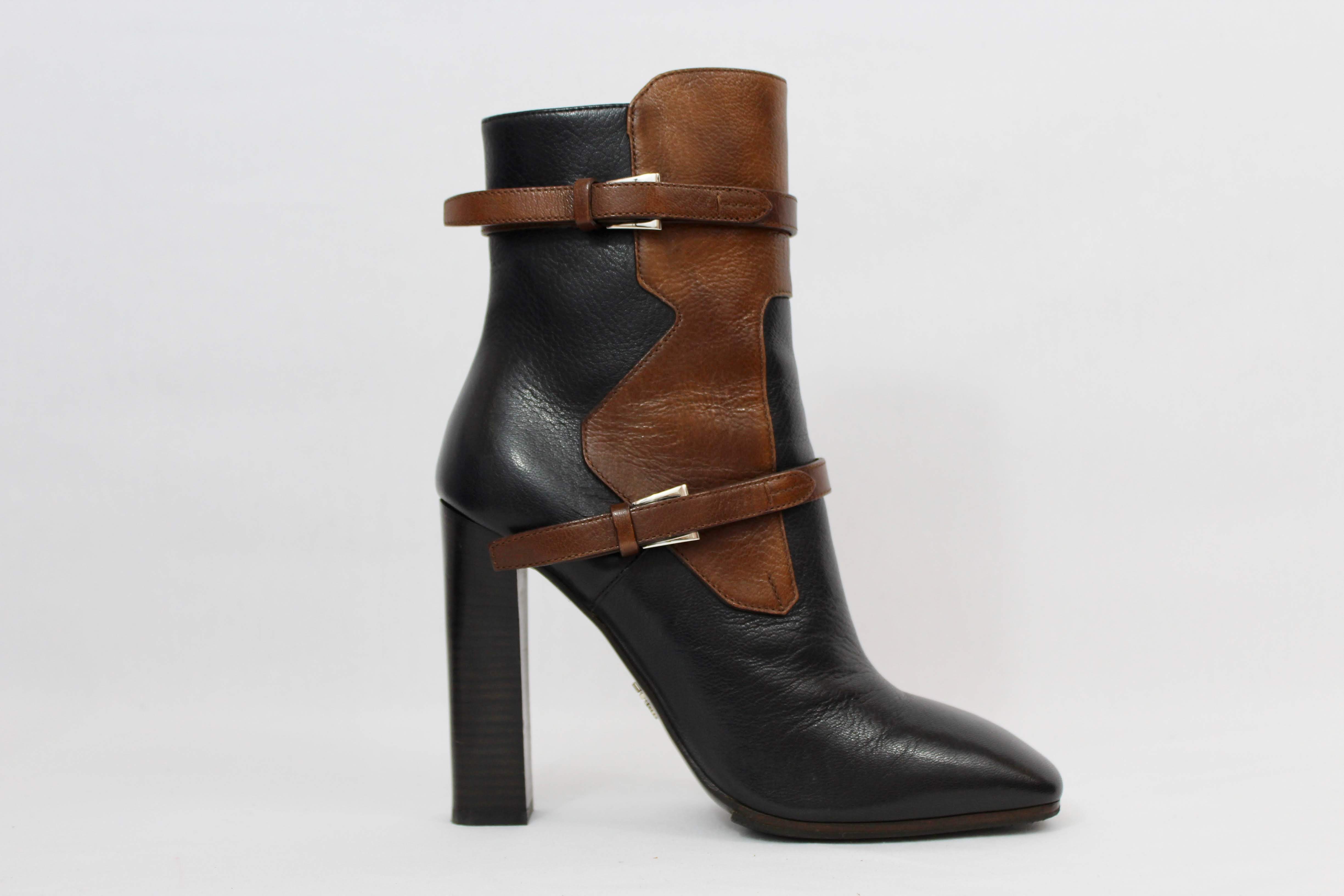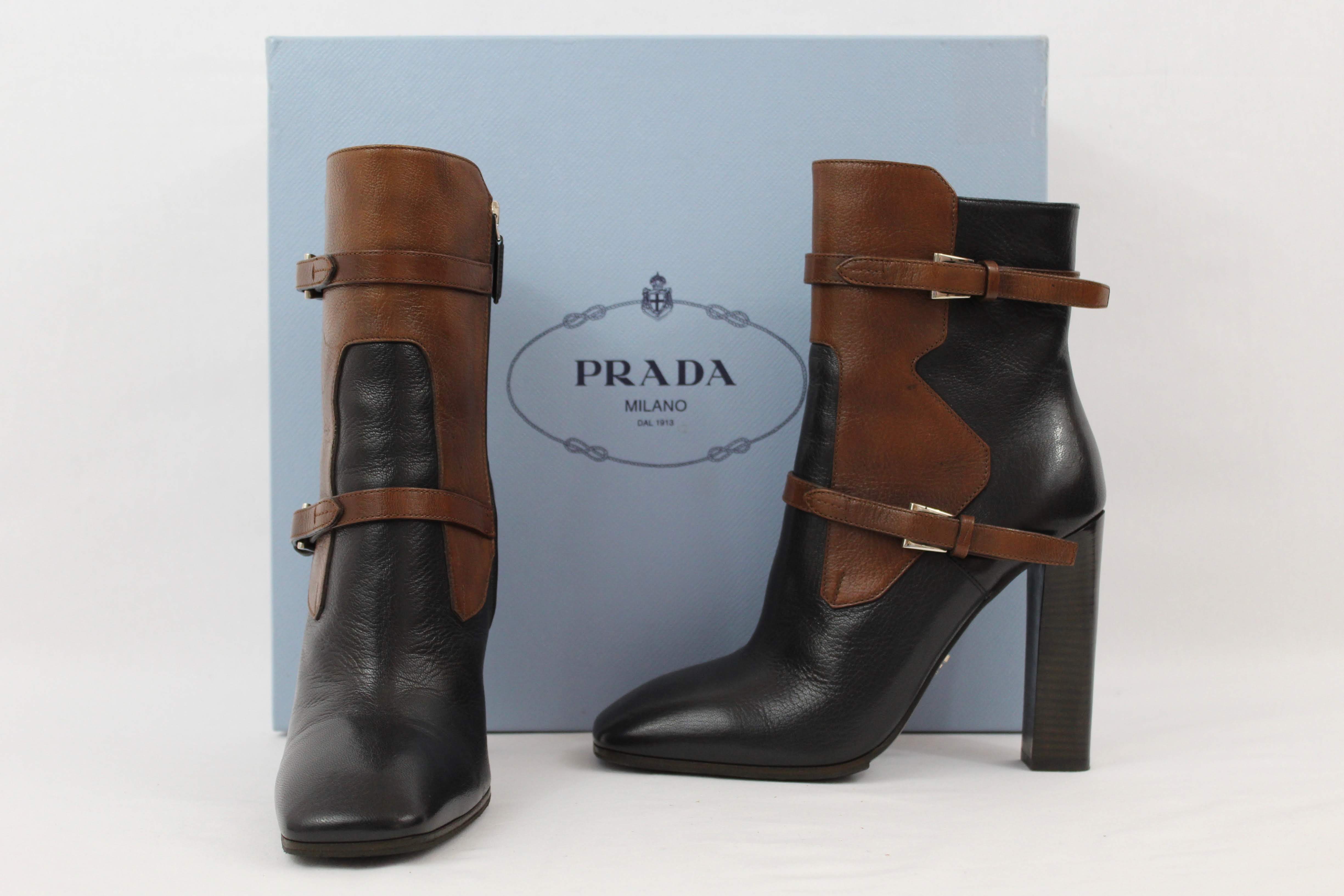 Prada Brown & Black Two-Tone Leather Ankle Boots