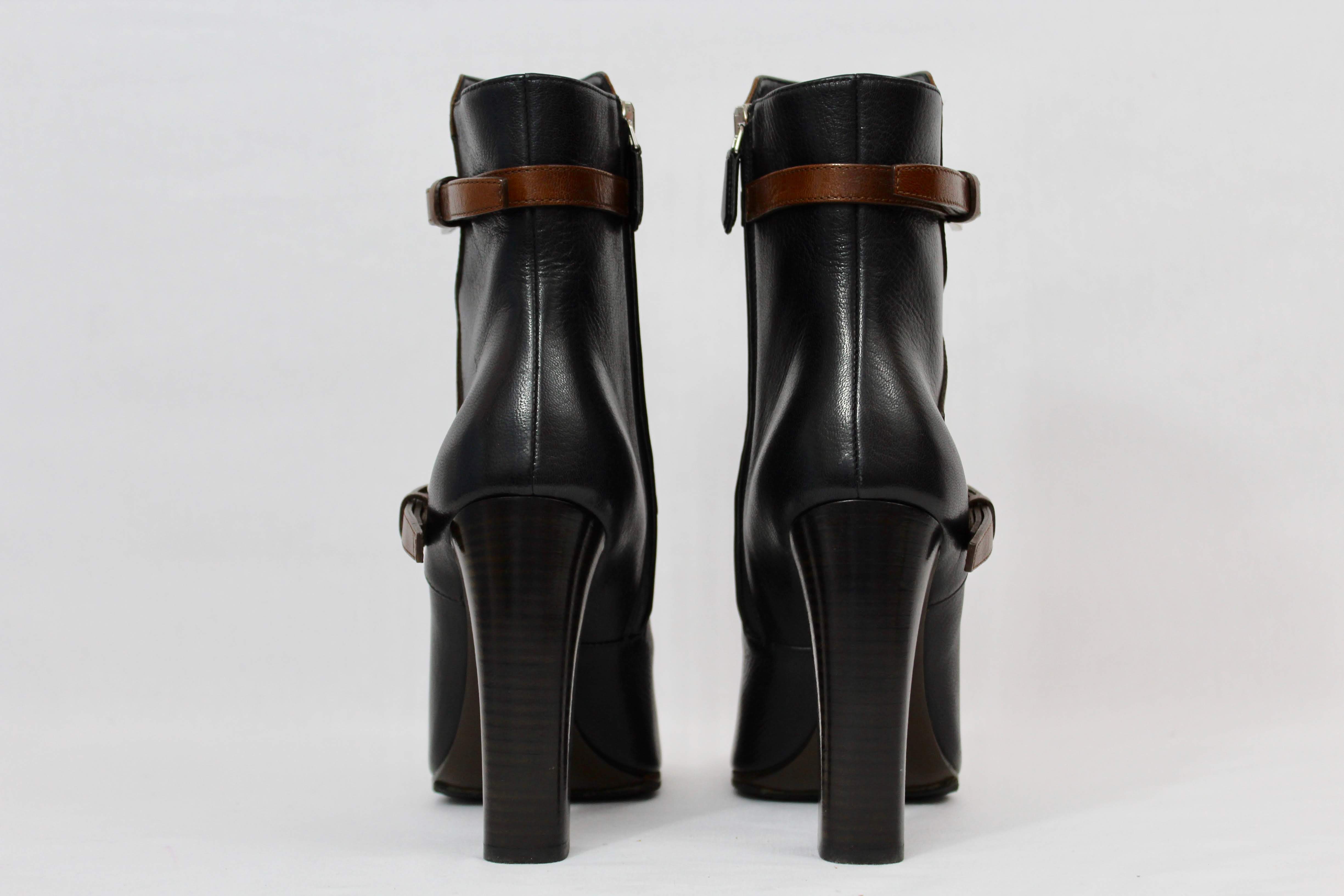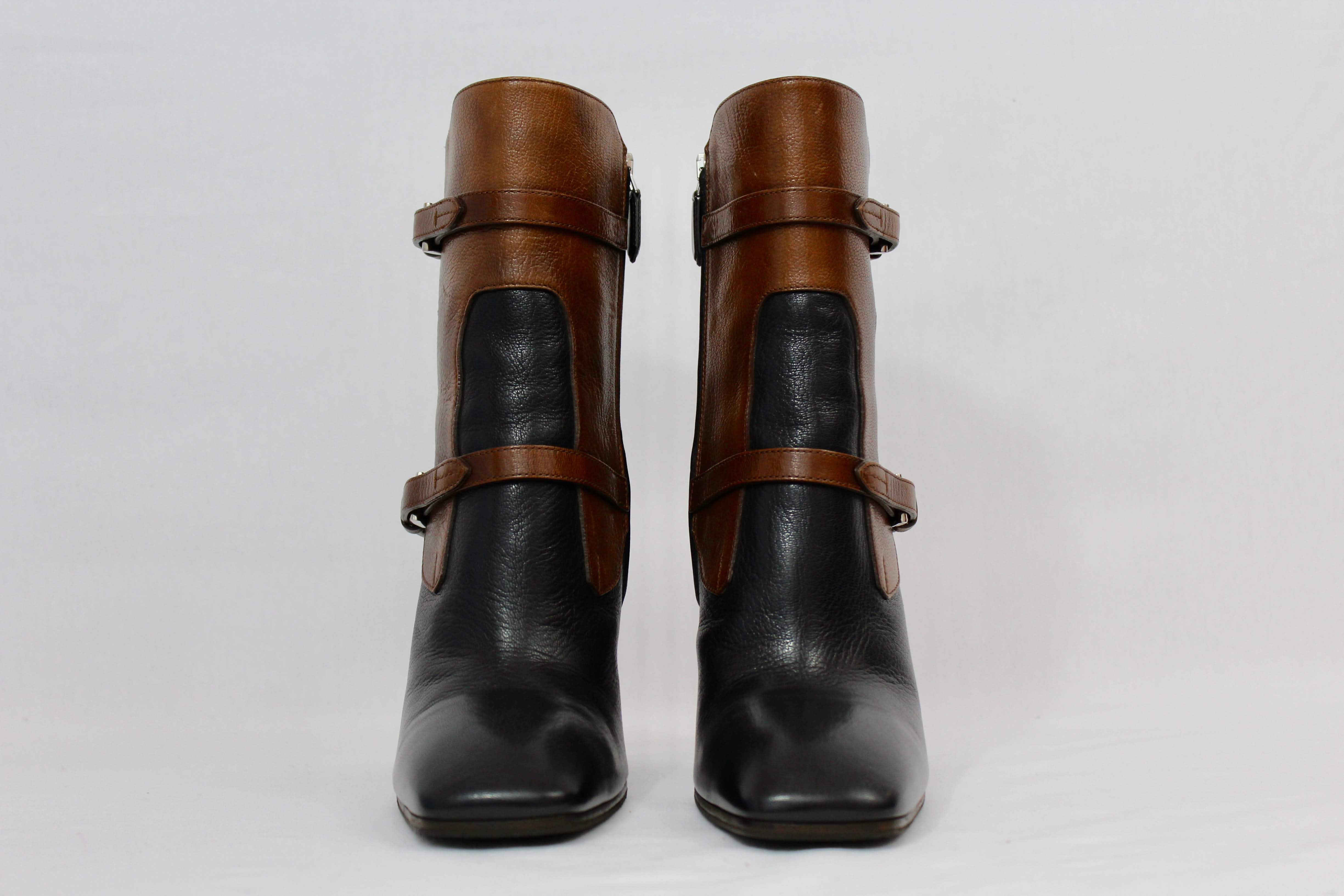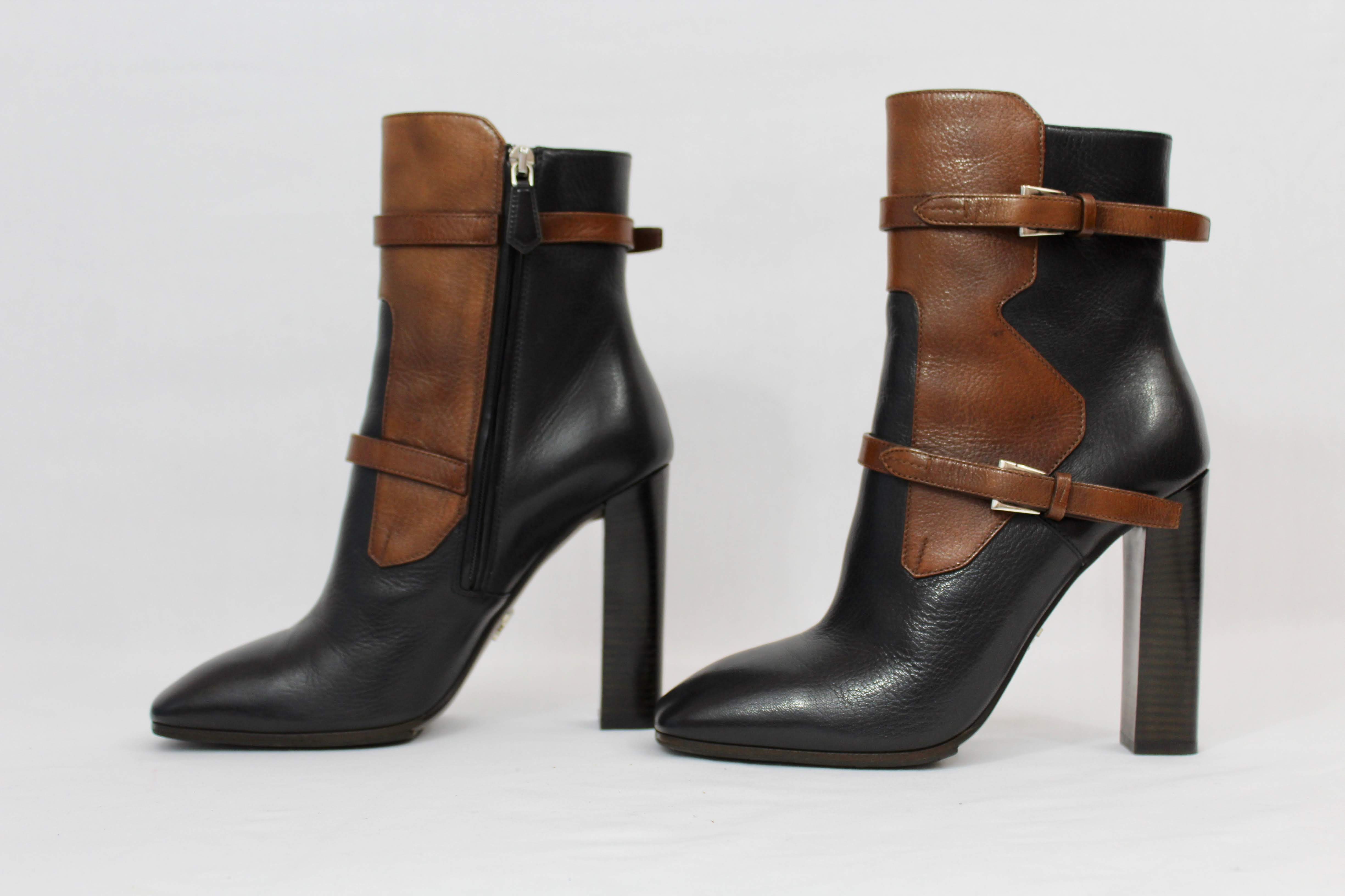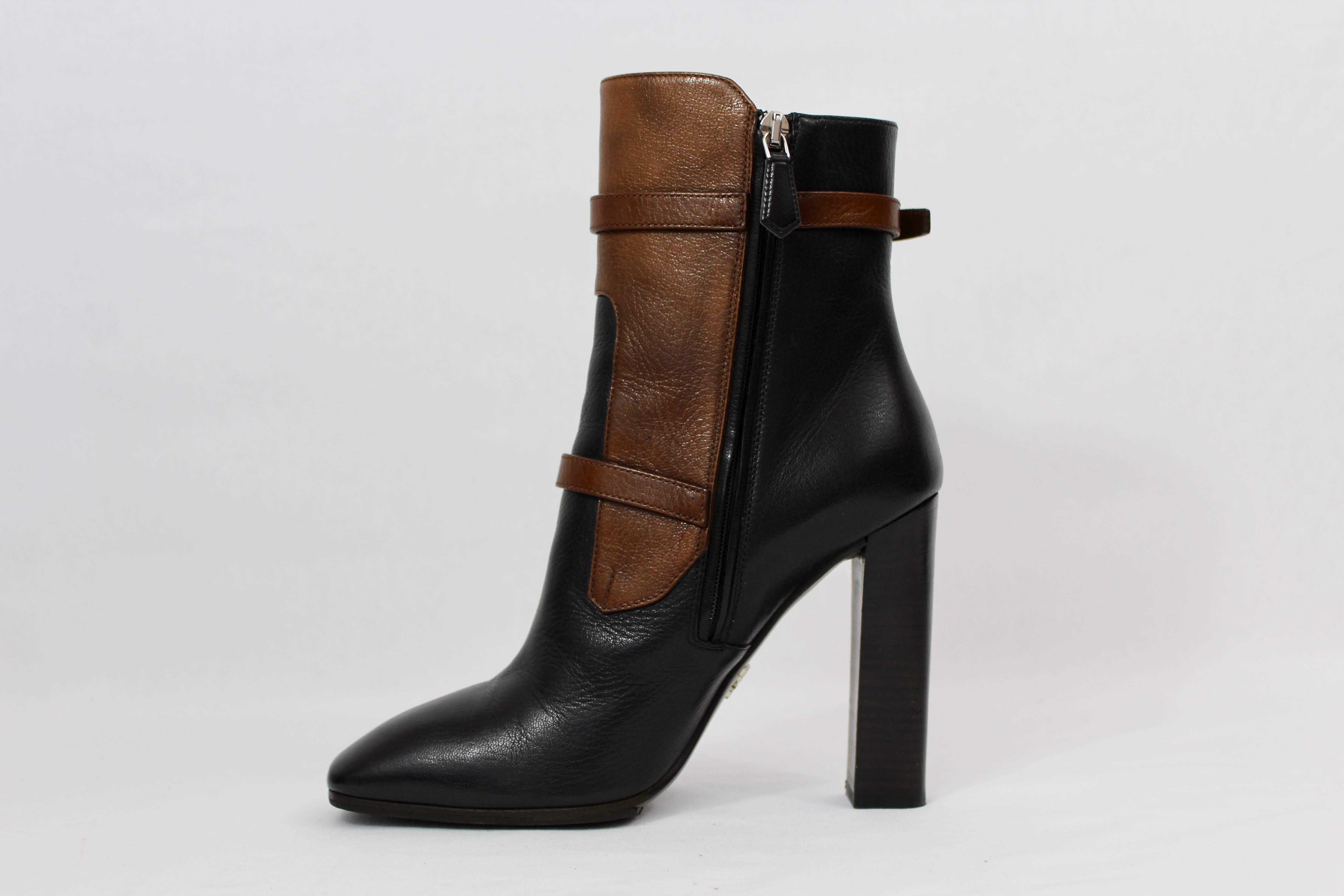 Prada Brown & Black Two-Tone Leather Ankle Boots
