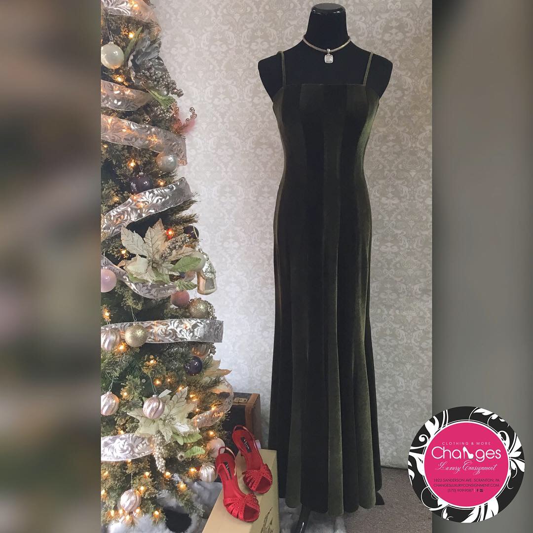All eyes on you with this dress on! Striking green velvet with spaghetti straps and an hour glass fit and flare hem.