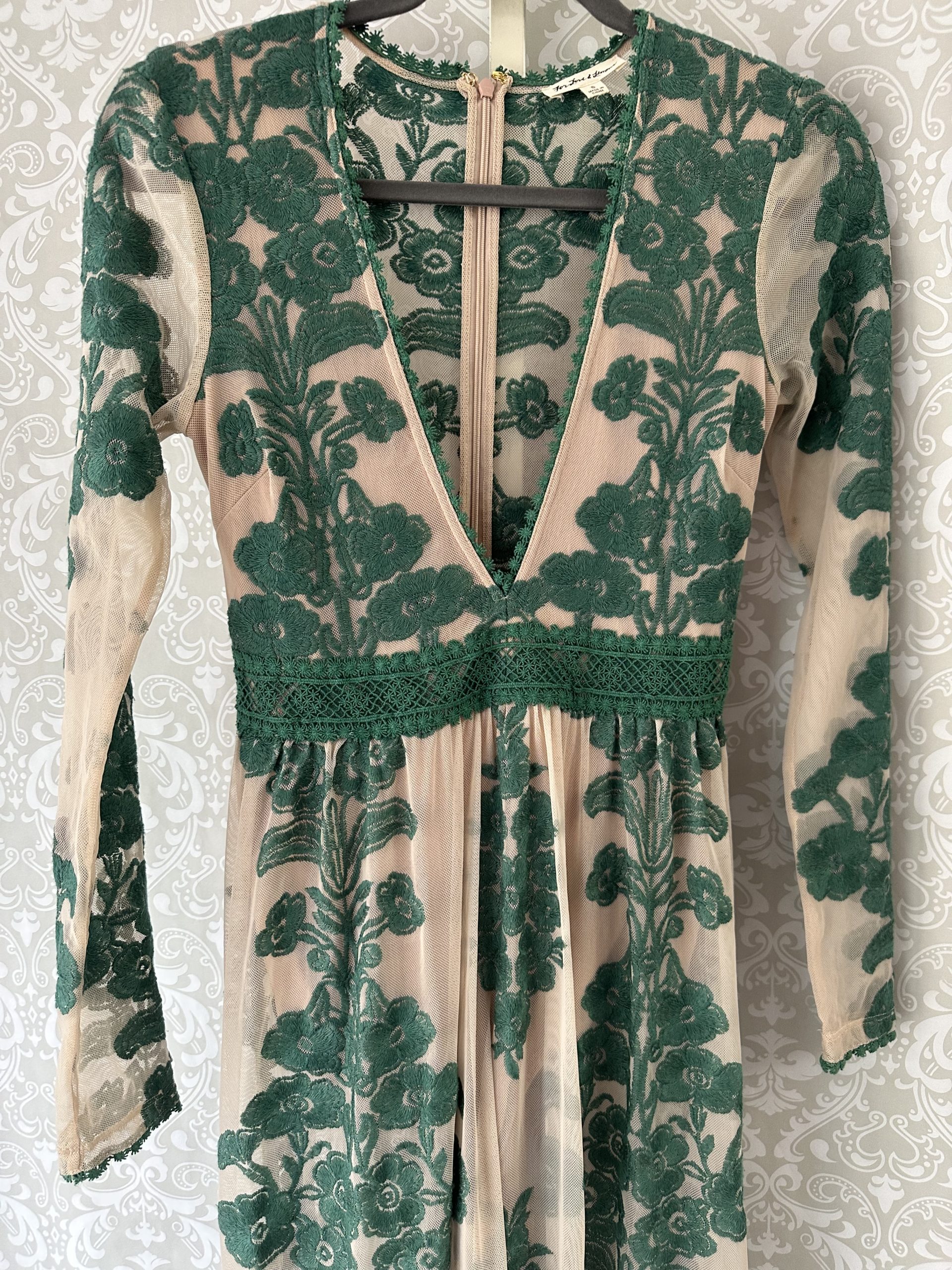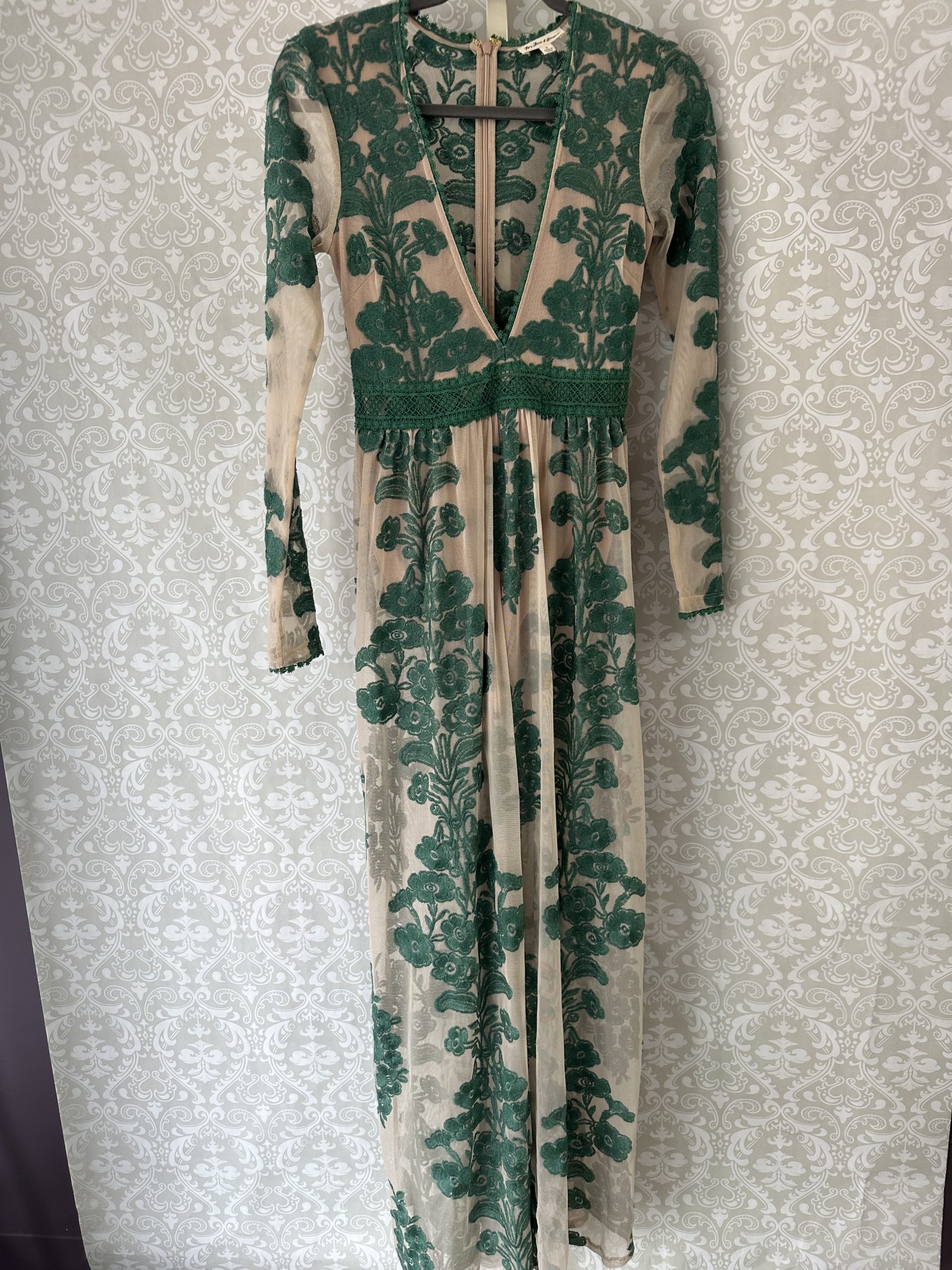For Love & Lemons Green Floral Maxi Dress Sz Small