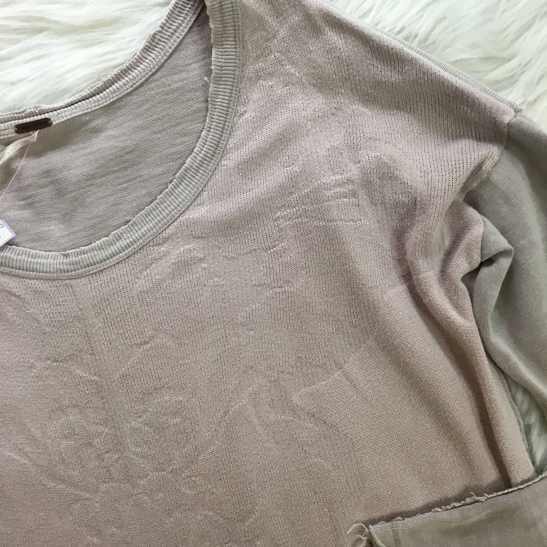 This straight cut Free People long sleeve shirt is perfect for layering or to wear on its own. Trendy with a light textured pattern on the front and light distress on the collar and sleeves. Perfect with jeans and boots!