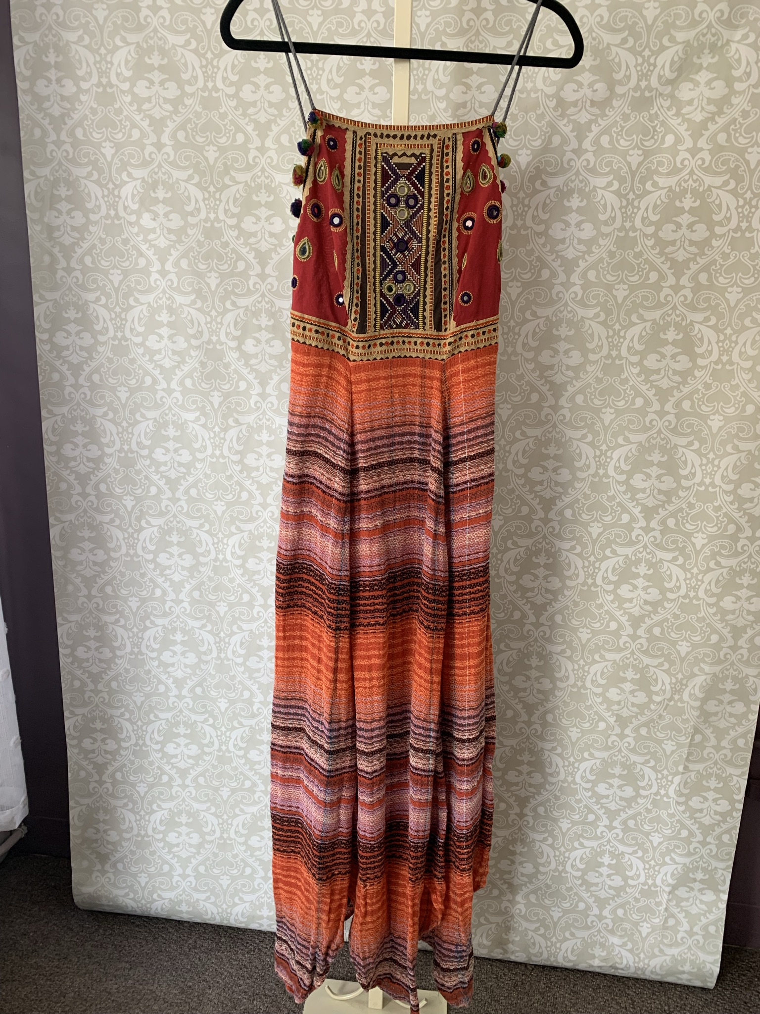 Free People Red Design Boho Maxi Dress Sz Small