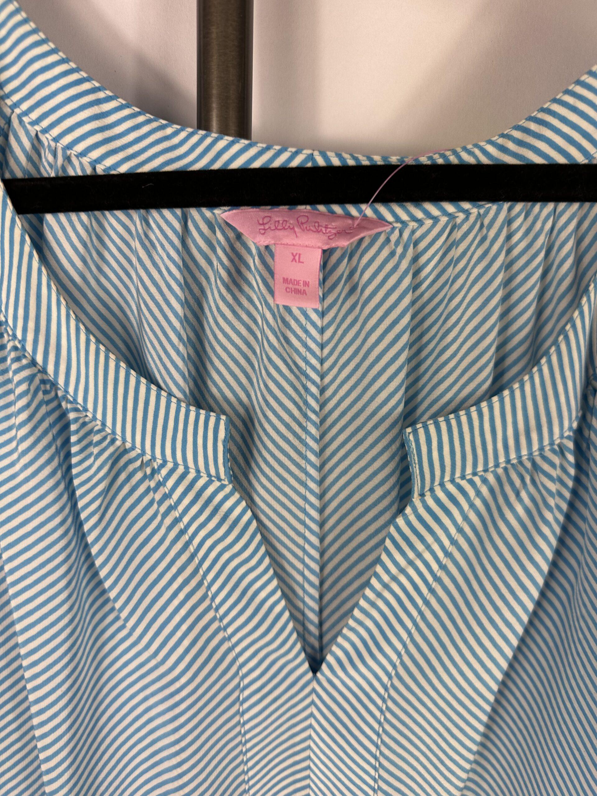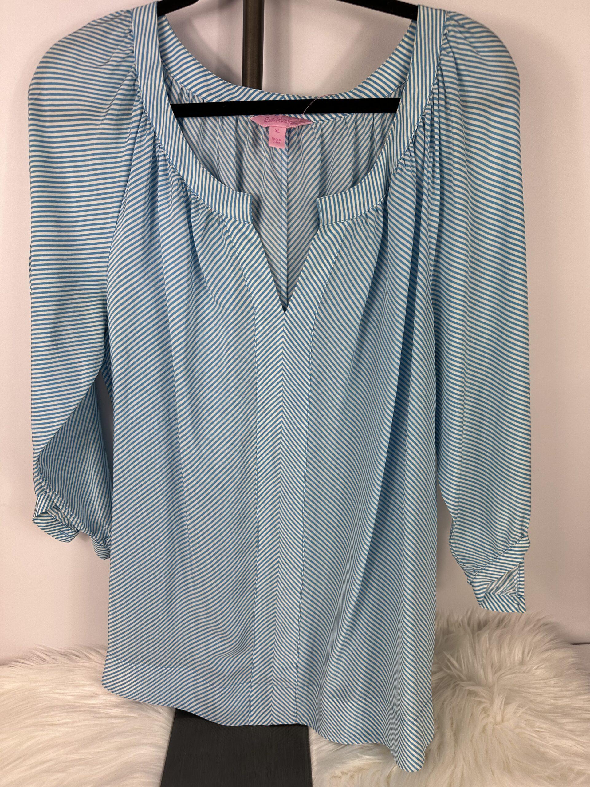 Lilly Pulitzer Blue & White Stripe Silk Blouse Sz XL