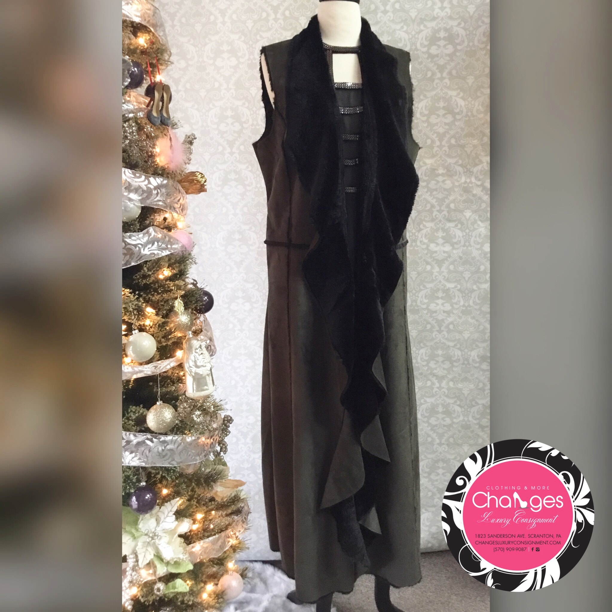 This long vest is so soft inside and out! It has a soft faux fur lining and the exterior has a gentle microfiber feel. Such a fun, versatile and sophisticated piece!