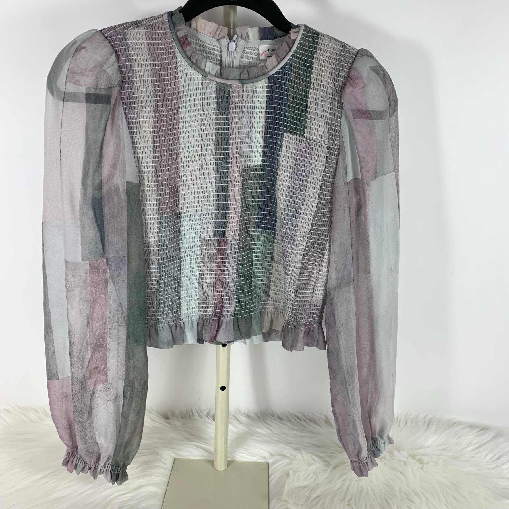 Wilfred Gray & Purple Crop Sheer Top Sz Small